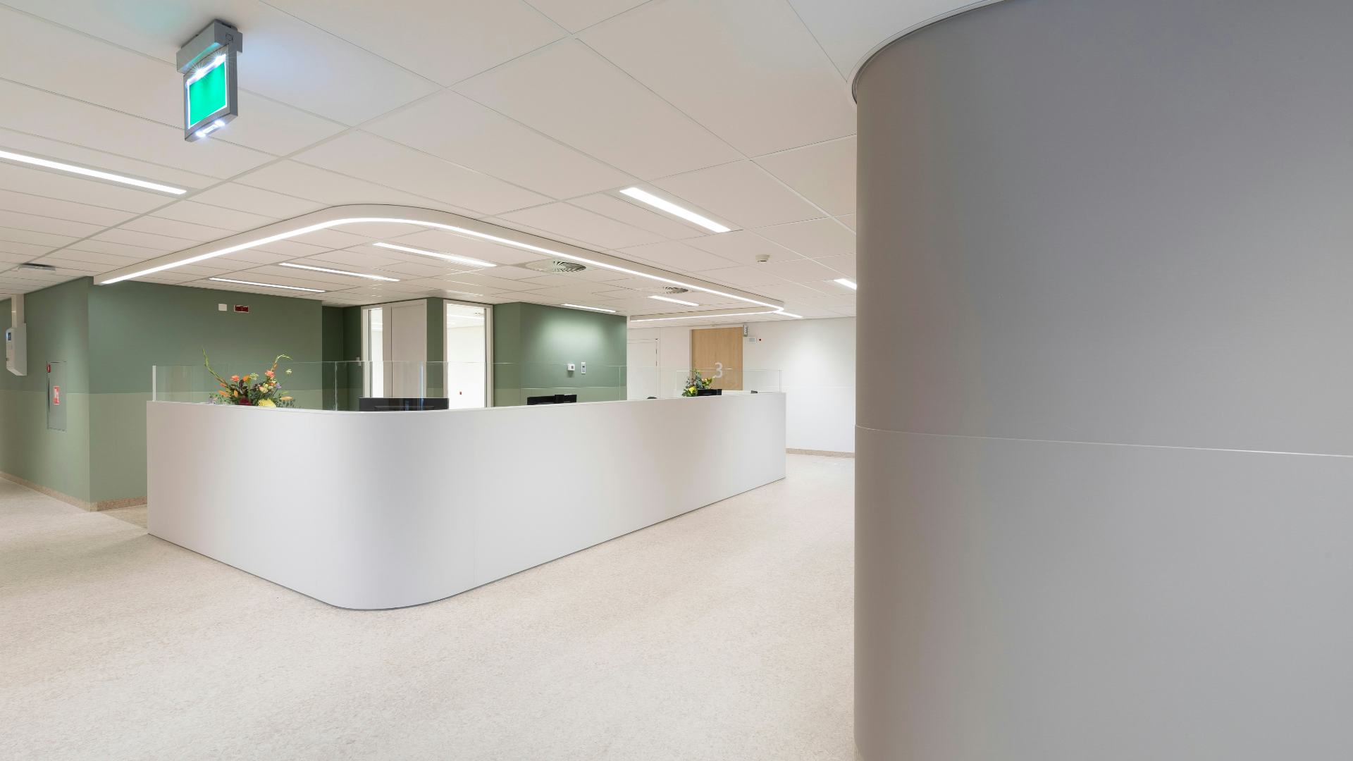 Het zorgt er direct voor dat medewerkers elke dag in een comfortabele en gezonde omgeving kunnen werken. Voor de patiënten straalt het ook vriendelijkheid en veiligheid uit. Daarom is er één herkenbare ingang, één uitnodigende ontvangstbalie en één daglichtrijke wachtruimte.