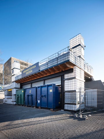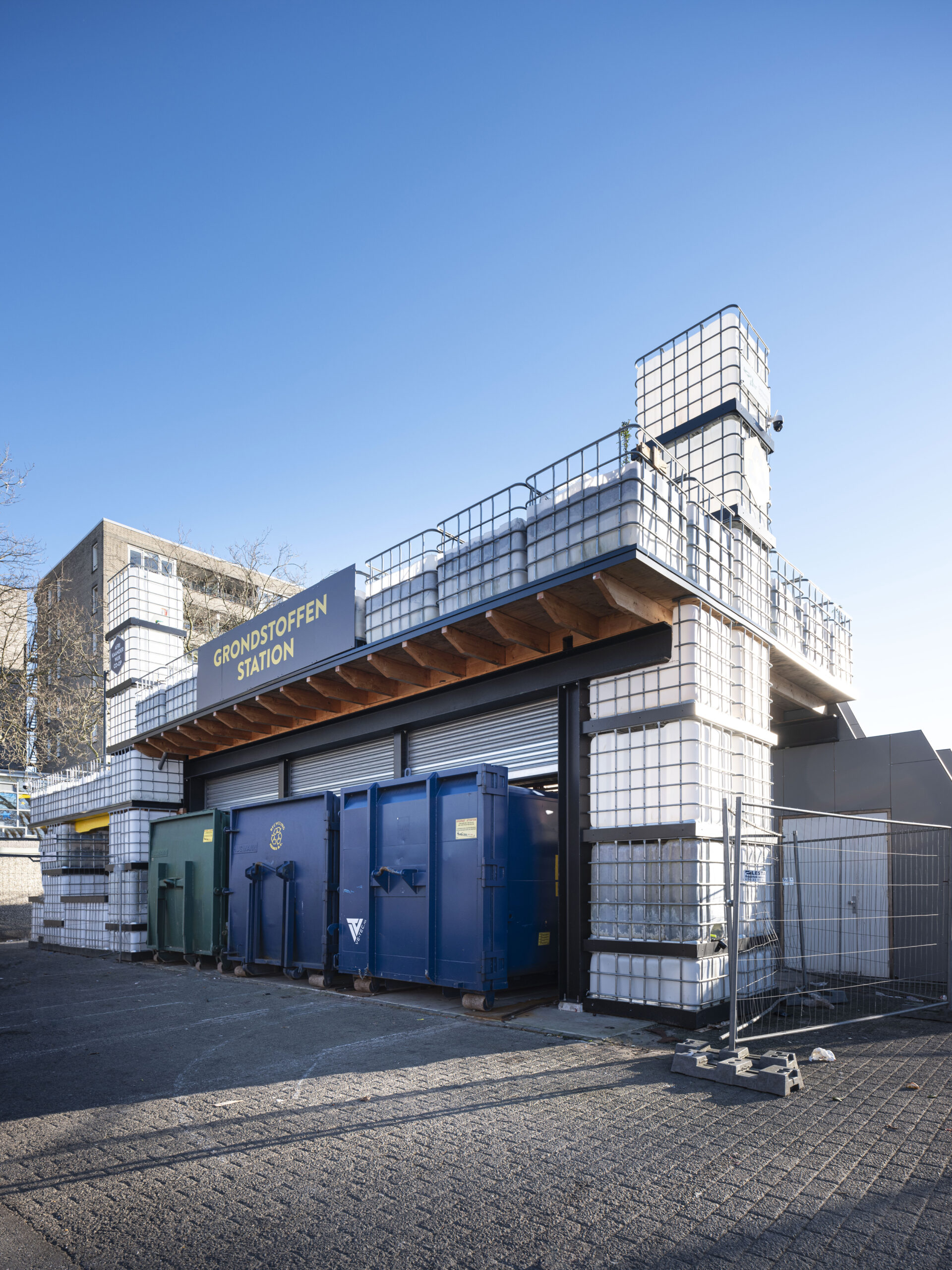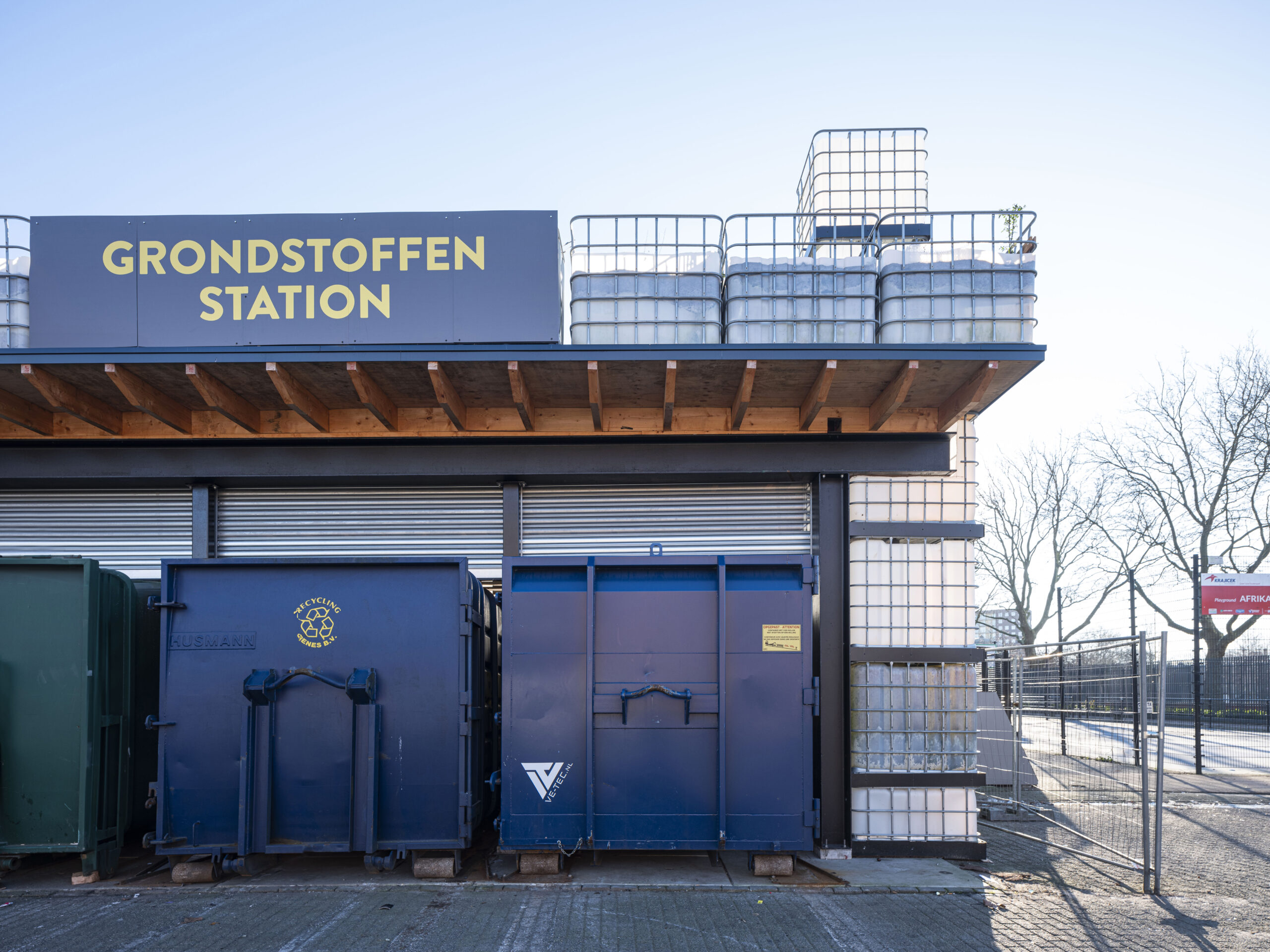 De Afrikaandermarkt is een belangrijke hub in het circulaire wiel. Het is de plek waar men verpakkingsvrij kan shoppen. Het Grondstoffenstation is de plek waar de marktkoopman zijn niet-verkoopbare waar gescheiden kan brengen en waar materialen kunnen worden geupcyceld, doorverkocht of hergebruikt. Het is tevens een plek waar afval kan worden voorkomen. Bewoners kunnen er spullen brengen voor reparatie of hergebruik.