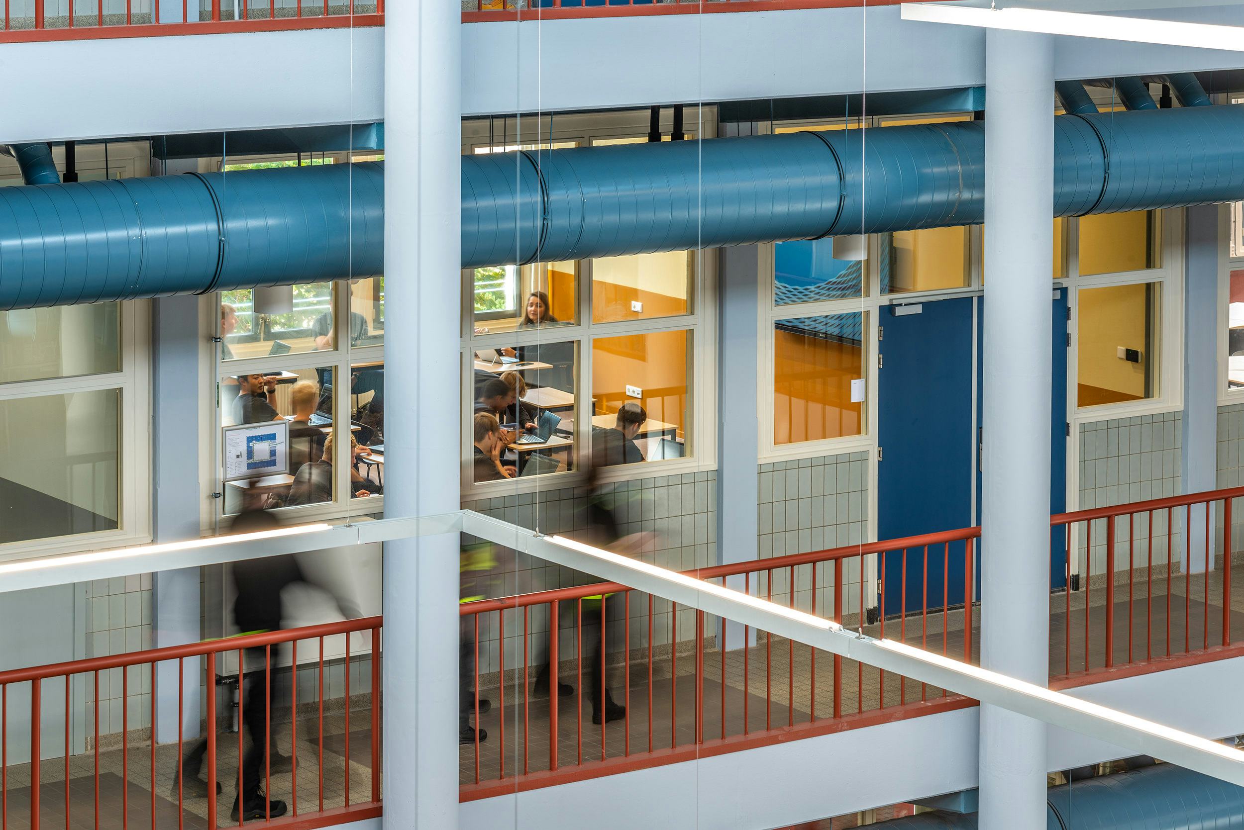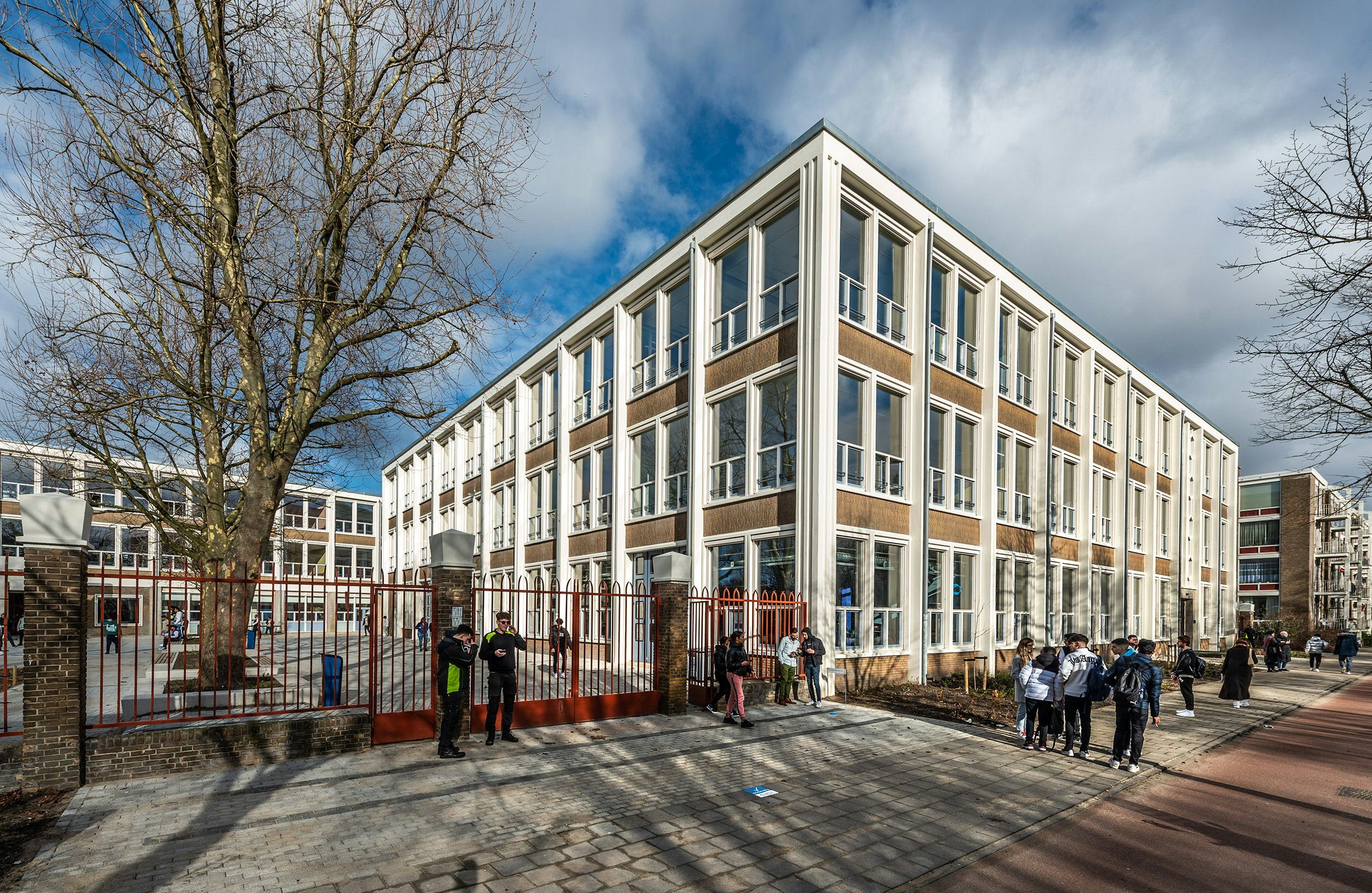 De grootste ambitie was om het monumentale gebouw te laten voldoen aan de huidige normen voor Frisse Scholen B én te verduurzamen (van label G naar A+), zonder het oorspronkelijke karakter van de ruimtes en de hoofdstructuur aan te tasten. Er is gekozen voor verduurzaming van de schil (o.a. monumentenglas en isolatie van het dak), maar alleen waar dat mogelijk is om zo het bouwfysische evenwicht niet te verstoren. Dankzij de nieuwe installaties wordt een prettig binnenklimaat gewaarborgd.