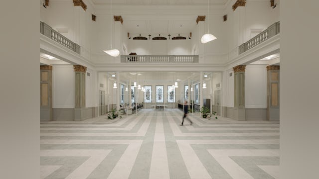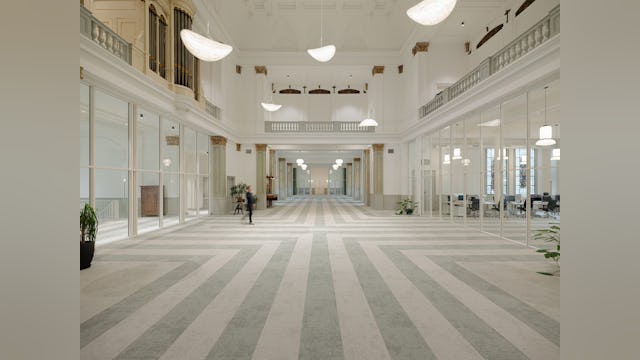 Door een respectvolle inpassing van ingetogen witte puien en wanden aangevuld met een karakteristiek labyrintisch vloerpatroon in groengrijze kleuren naadloos passend bij de originele kleuren is een interieur ontstaan dat een symbiose vormt met het authentieke kerkinterieur uit 1866. Het ‘labyrint’ geeft een ziel aan de ruimte en verbeeldt het proces van de behandelingen die hier aangeboden worden die de cliënten helpen om ‘hun weg terug te vinden’.