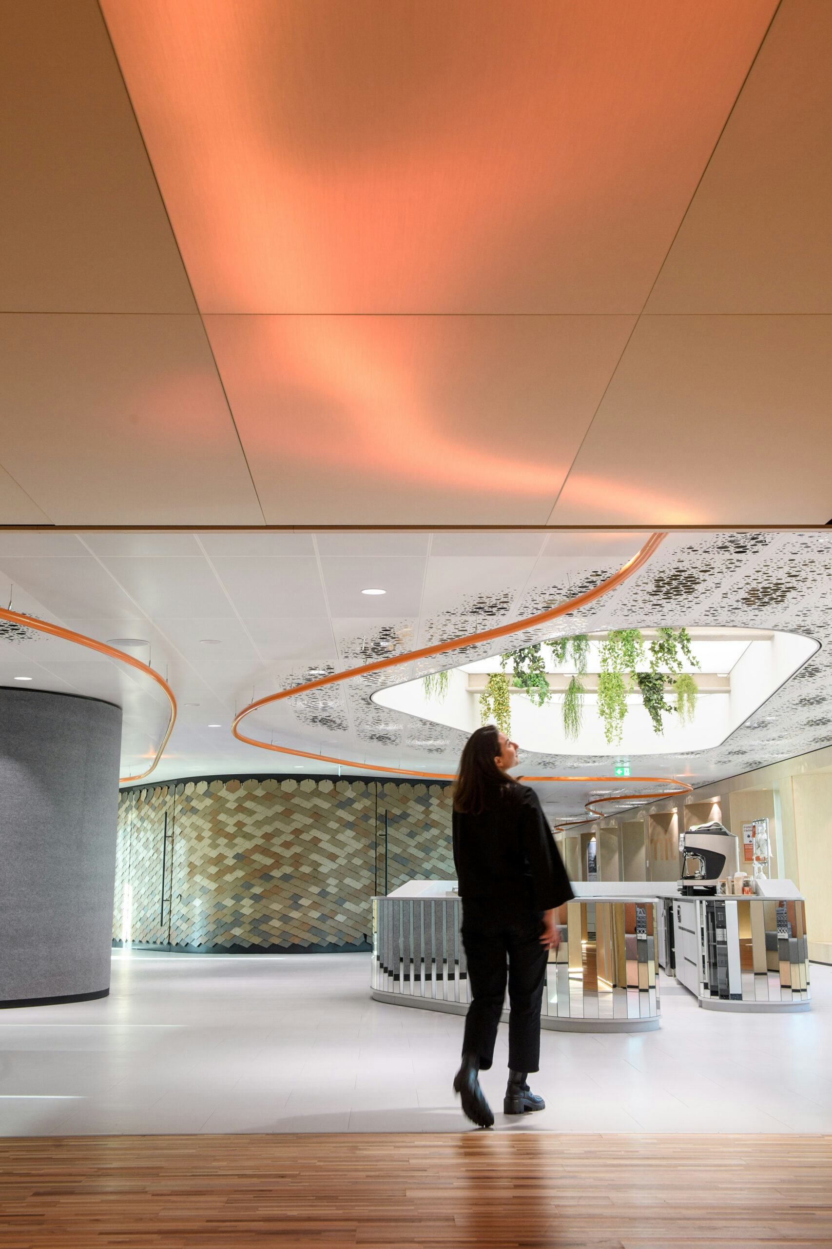 Om een duurzaam en passend interieur te creëren, doorliepen we een co-creatieproces via workshops met gebruikers, partners en marktpartijen. Daarnaast bundelen we onze krachten met Silo om de thema’s van NN – creativiteit, gemeenschap, duurzaamheid en vitaliteit – te belichten door middel van experience design. Deze integrale aanpak zorgt ervoor dat gebruikers de kernwaarden van de organisatie ervaren, zelfs tot op gastronomisch niveau bij de bar van de Event Space.