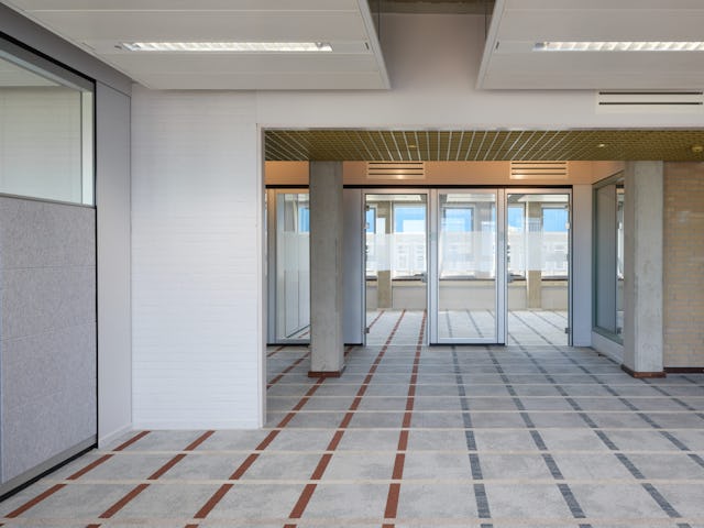 PTSA bedacht en ontwierp 15 circulaire producten die parrallel aan het gebouwontwerp ontwikkeld zijn. Deze producten lopen uiteen: binnenwanden, plafondsystemen, vloerafwerkingen, verlichting, klimaatplafonds tot vast meubilair. Als het samenstellen van een collage is tegelijk gewerkt aan een samenhangend interieur; vanuit het bestaande d.m.v. selectie (cureren), bewerkingen, maatvoering, licht, patronen en een overkoepelend kleurenplan in samenwerking met ontwerpbureau Raw Color.