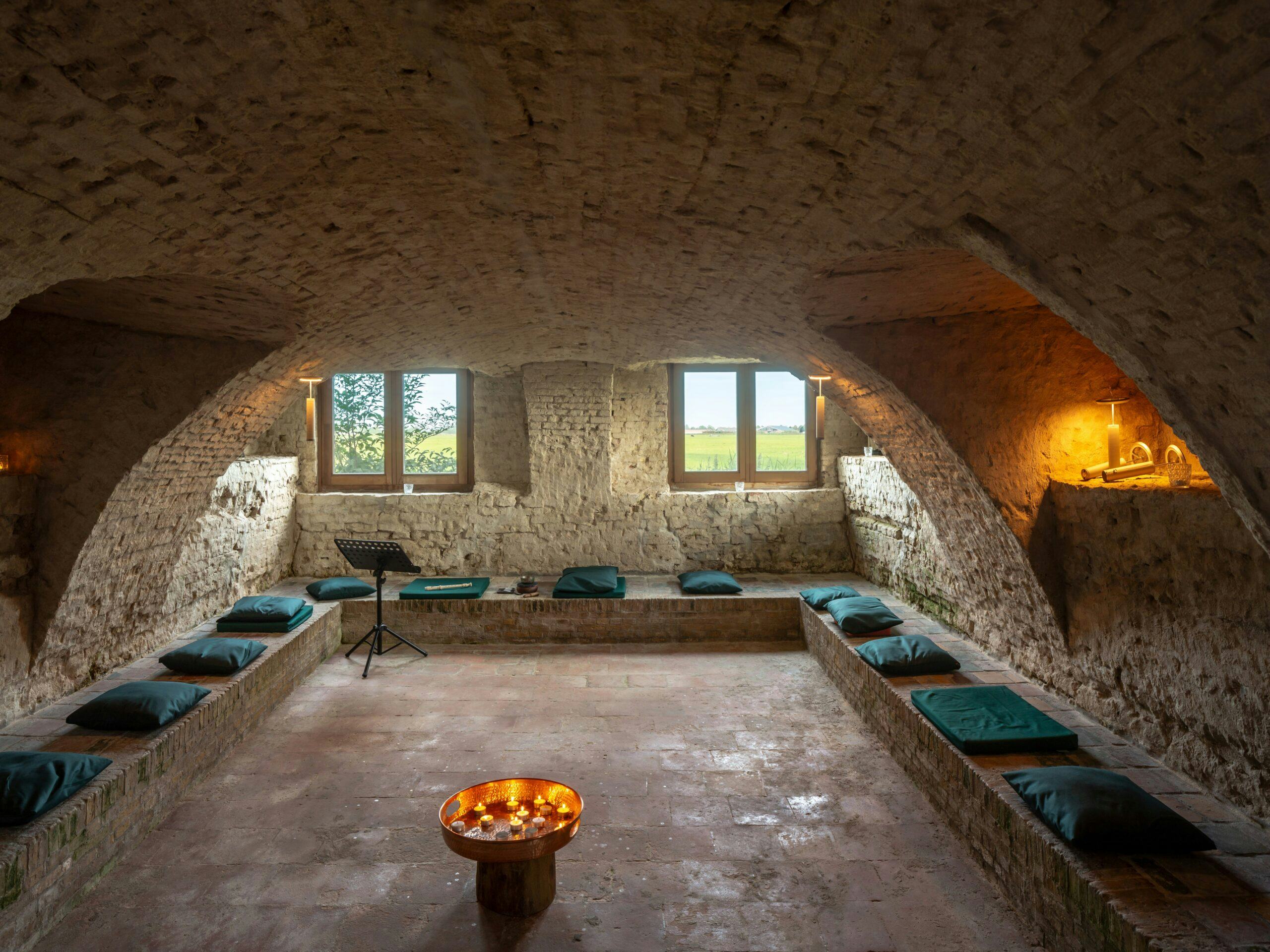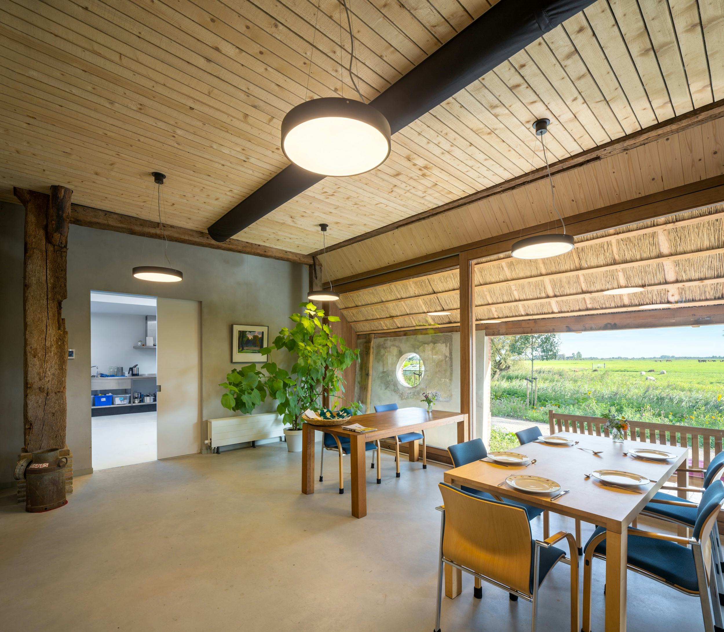 De typologie van de boerderij met de kenmerkende binten rondom het hooivak is verrijkt met het type van de kloostergang. Tezamen vormen zij de structuur van het nieuwe kloostercomplex. De kloostergang verbindt de nieuwe volumes van woonhuizen en gastenkamers. De kloostergang omsluit een leeg midden dat in kloosters van symbolische betekenis is. In dit open landschap biedt het vooral ook beschutting tegen weer en wind. Beschutting is op zijn beurt voor Westerhûs weer van symbolische waarde.