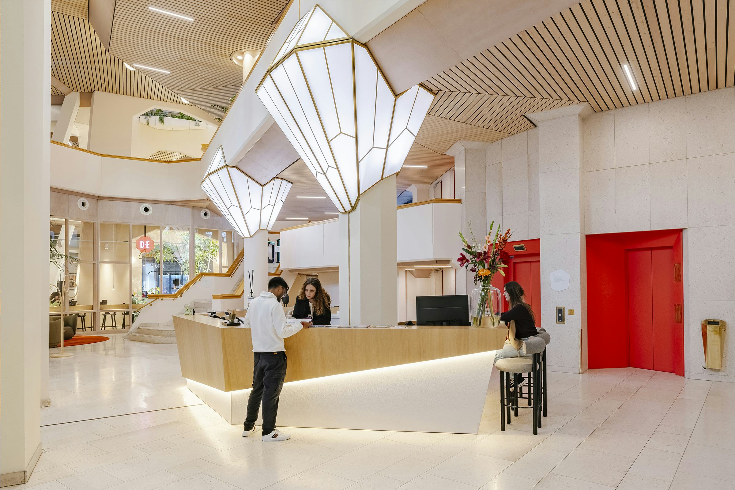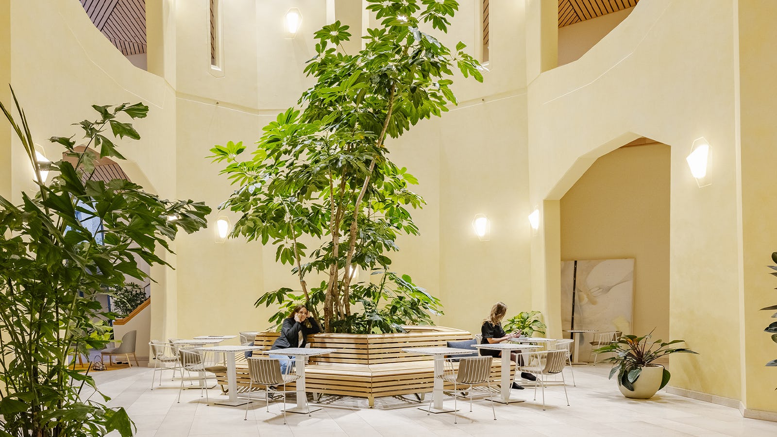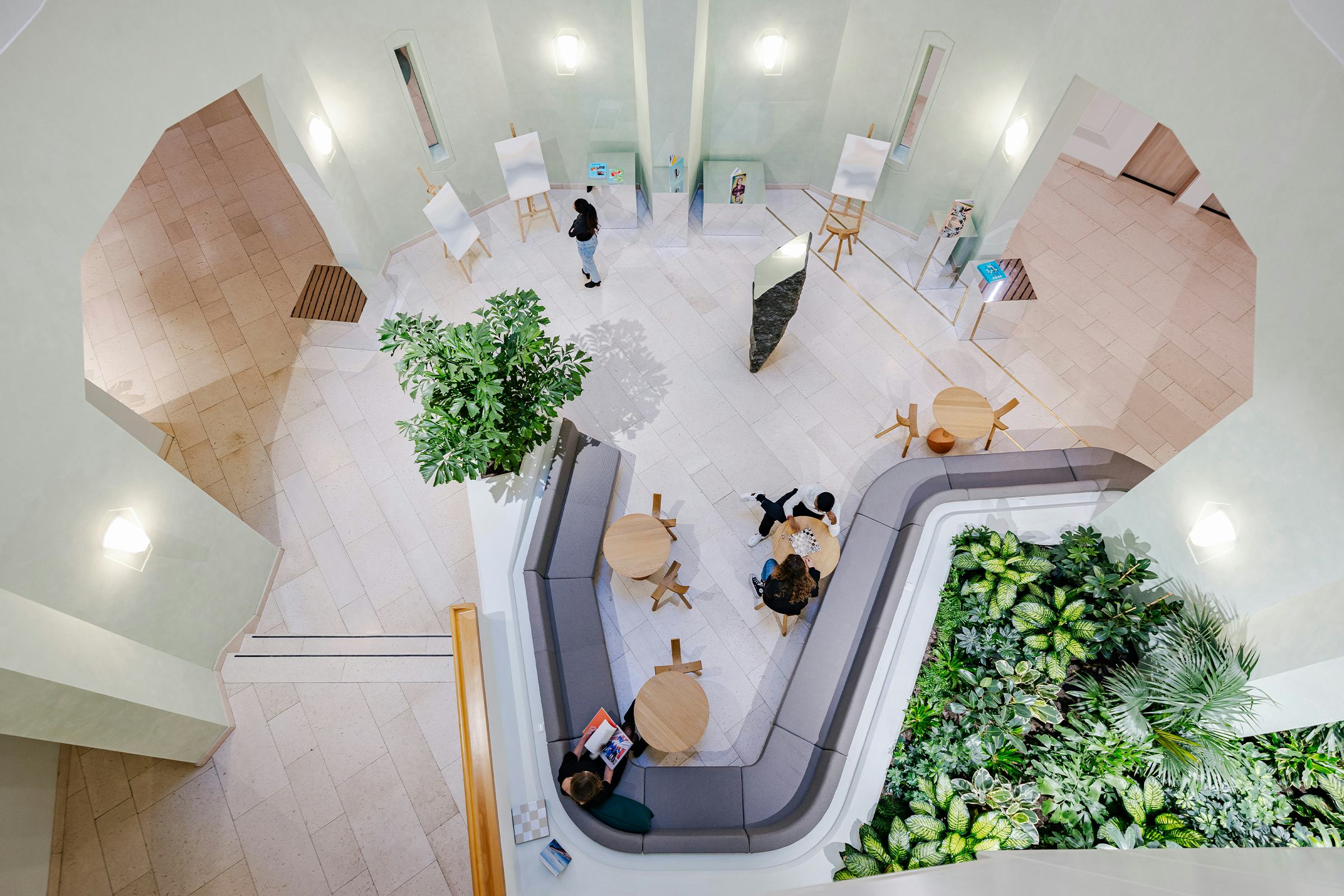 Het interieurontwerp is gericht op de gebruiker van de ruimte, waarbij schaal, functionaliteit, ruimtelijk bewustzijn en aanpasbaarheid een omgeving creëren waarin comfort en welzijn centraal staat. Het interne landschap omvat ook thematische pleinen die aan elkaar gerelateerde activiteiten bevorderen, zoals leren, artistiek uiten en ontspannen. Dit stimuleert creativiteit, culturele uitwisseling, samenwerking en spontane ontmoetingen.