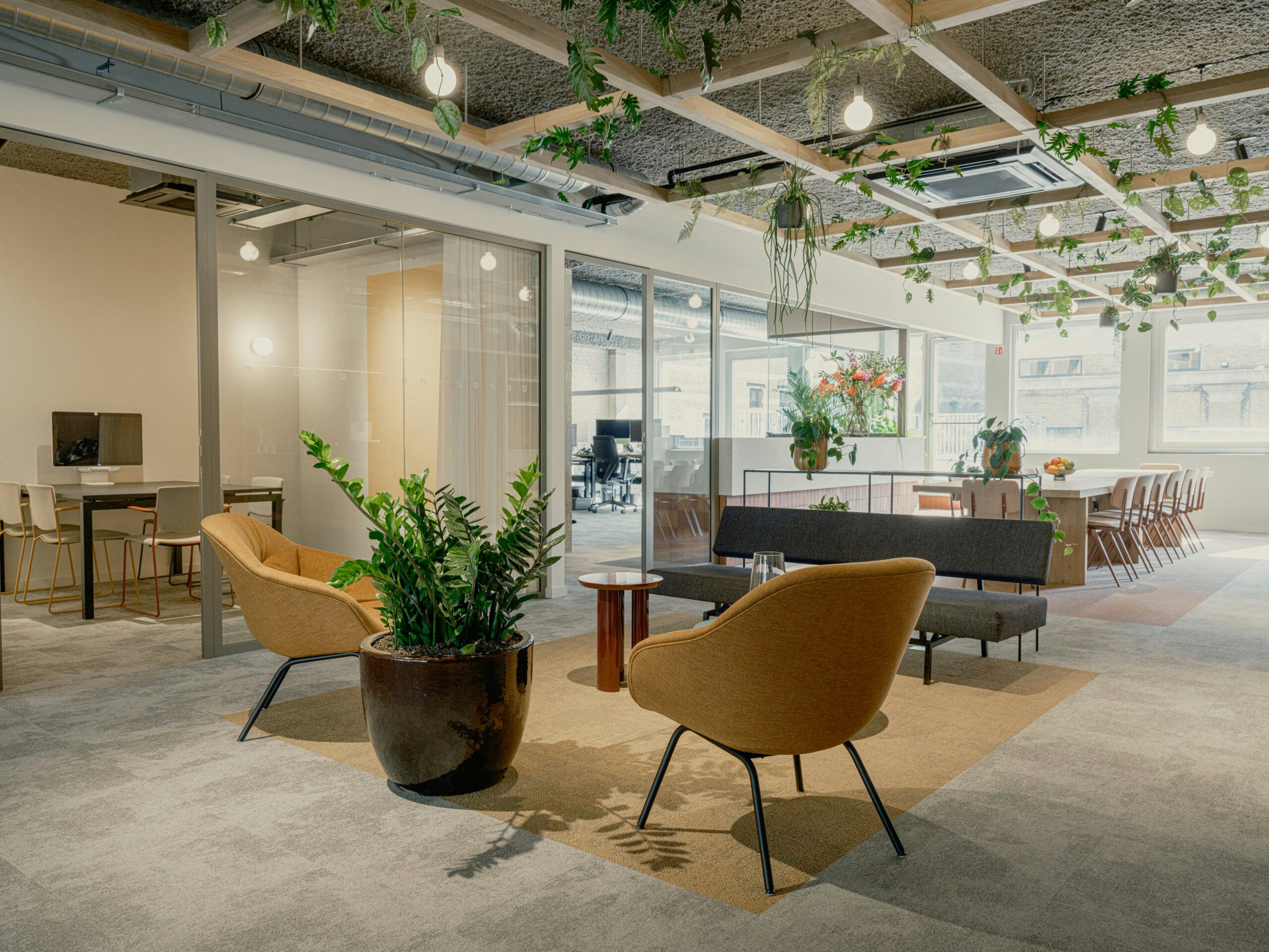 Om het boetiekgehalte te verhogen hebben we voor een deel van het meubilair samengewerkt met vintage specialist Nome. Voor de integratie van het groen, hebben we samengewerkt met groenspecialist Jungl.