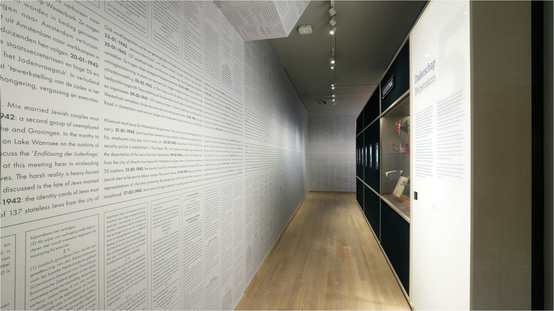 Een van de belangrijkste doelstellingen van de tentoonstelling is het menselijk maken van de slachtoffers. Meestal worden grote gebaren gebruikt om de massaliteit van de slachtoffers te tonen. Wij gebruiken ze om de anti-Joodse maatregelen in meterslang ‘misdaadbehang’ weer te geven. Meestal wordt kunst gebruikt om horror te abstraheren. Wij gebruiken het om de slachtoffers menselijker te maken. Via theatrale installaties presenteren we de 'vergeet-mij-nietjes', persoonlijke verhalen die de slachtoffers menselijk maken. Elk verhaal herinnert ons eraan dat elk slachtoffer een mens was met een leven en een verhaal te vertellen.