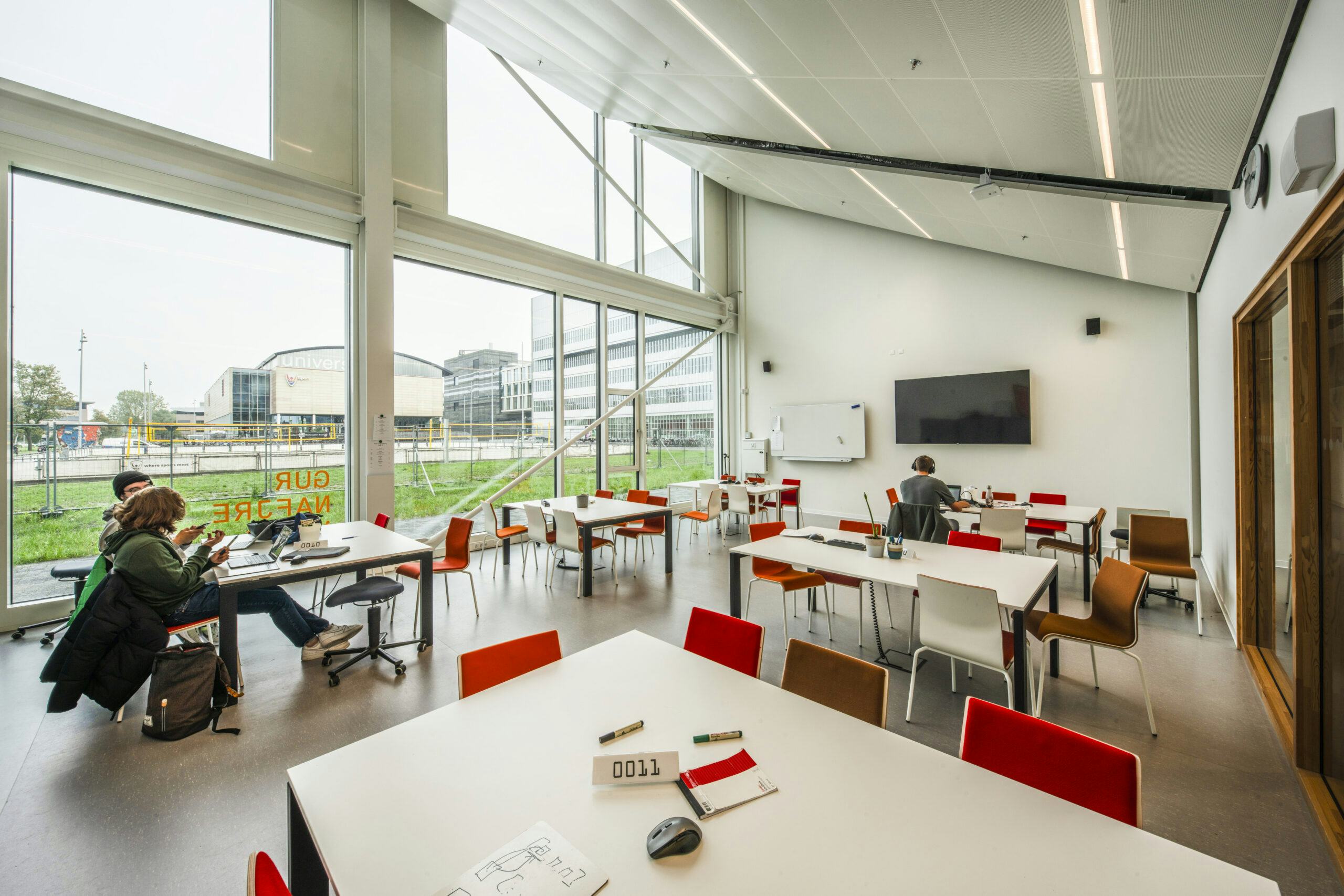 LAB42, onderdeel van de Faculteit Natuurkunde, Wiskunde en Informatica, benadrukt (bedrijfs)samenwerking. Ontworpen om transparantie en creativiteit te bevorderen, met een open uitstraling en verantwoorde materialen. Het ligt centraal op de campus, met verbindingen voor langzaam verkeer dwars door het gebouw. Het hoge atrium en speelse vides bieden een dynamisch en inspirerend interieur met diverse functionele zones voor studie en ontmoeting en verleiden gebruikers hoger het gebouw te gaan.