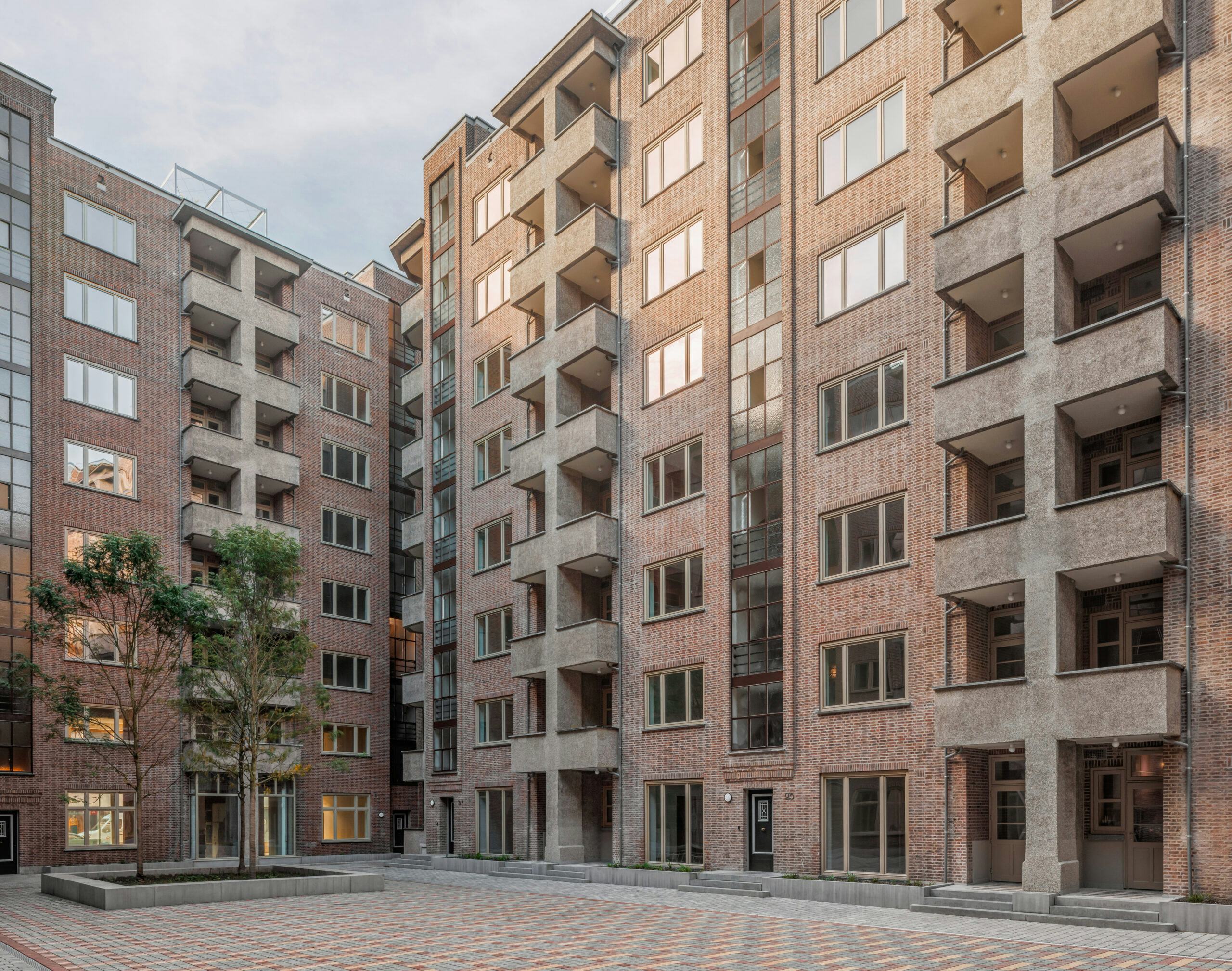 Het vernieuwde ensemble volgt de morfologie van de zogenaamde ‘Weense Hoven’ waarbij woonblokken van vijf tot tien bouwlagen zijn geschikt rondom gemeenschappelijke en autovrije binnenhoven. Speciaal voor de vernieuwing van dit project is de Van Craesbeeckstraat heringericht tot autovrij derde hof tussen de twee blokken. Ook het binnenhof is vergroend met grote bomen en nieuwe plantenbakken rondom met verschillende plantensoorten die ook langs de gevel omhoog mogen klimmen.