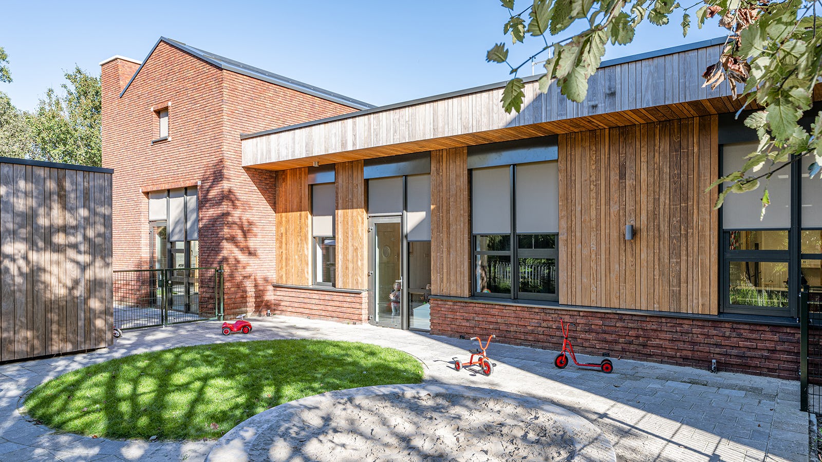 De vormgveging van het nieuwe kindcentrum sluit aan op de maat en schaal van het kind. De vier metselwerkvilla’s spreken tot de verbeelding van kinderen en geven het gebouw een kleinschalig karakter. Dit is ook in de school te ervaren. De warme materialen zorgen in de school voor een huiselijke sfeer. Het ‘zwevende huisje’ geeft een extra beleving voor de kinderen. Garderobes zijn zorgvuldig weggewerkt in wanden en de daklichten zorgen voor veel daglicht in de centrale hal en op leerpleinen.