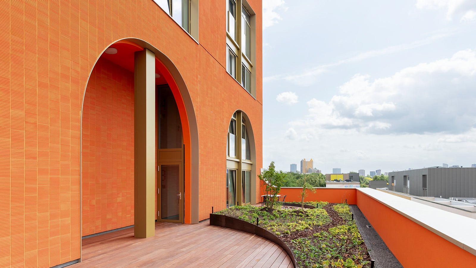 NEXT stond in 2005 al aan de wieg van een stedenbouwkundige ontwikkelingsvisie op de wijk genaamd ‘omdat smaken verschillen!' Deze legde een structuur neer die verschillen en diversiteit alle ruimte gaf. Voor de Waag wilden wij elke twee lagen een nieuwe ervaring meegeven aan de bewoners. Op de begane grond vind men de buurtwerkkamer en grondgebonden maisonnettes, daarboven de plintappartementen die over het plein uitkijken. Het dakterras biedt ruimte voor wonen aan een collectieve buitenruimte.