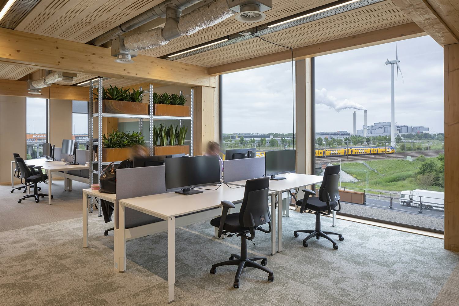 De ruimte op en rondom de gebouwen, ontworpen door De Urbanisten, is uitnodigend voor mens en dier, met rijke beplanting en nestkasten. Regenwater wordt op het terrein geborgen en gebruikt voor de bewatering van planten op eigen terrein. Met deze inrichting leveren we ook een bijdrage aan een klimaatadaptieve en natuur inclusieve omgeving, en vervullen we, zowel binnen als buiten Nederland, een voorbeeldfunctie voor het ontwikkelen van duurzame kantoorgebouwen.