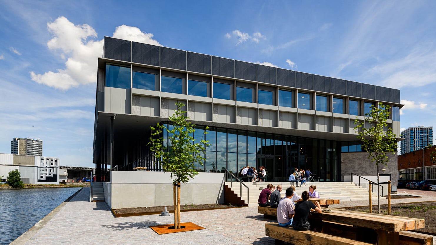 De karakteristieken van deze voormalige tabaksopslag – veel vloeroppervlak, grote open ruimtes en relatief weinig geveloppervlak – zijn benut als kans: de overmaat is ingezet als vliegwiel voor ontmoetingen. Nieuwe daklichten en vides vormen het hart van het gebouw dat daglicht tot in de kelder brengt. Binnen dit ruimtelijk spel van publieke plekken en werkruimten is alles gericht op het creëren van een bruisende gemeenschap van gebruikers met maximale interactie.