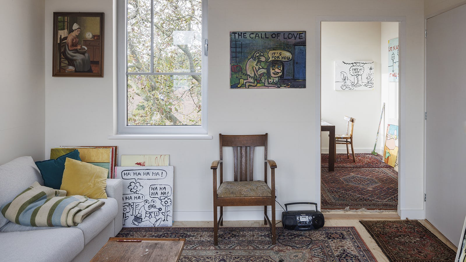 De ruimte is zichzelf genoeg. Een bovenkamer om geconcentreerd te werken. Een binnenruimte. Het is een betoverende plek, beschut en tegelijk open naar de wereld.