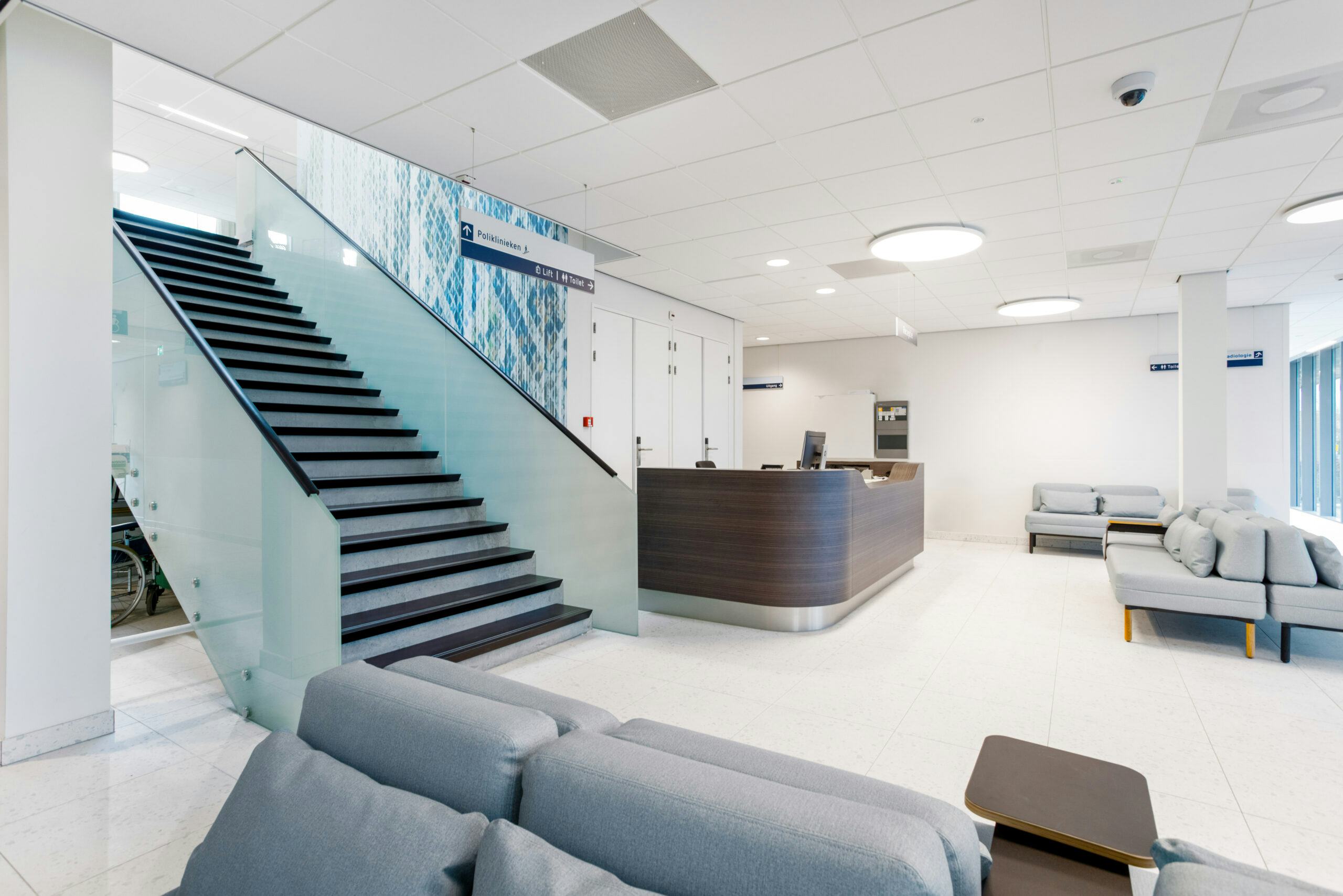 Rondom kent het gebouw een grote mate van transparantie door grote verticale ramen over de twee verdiepingen. Het zorgt ervoor dat je het parkachtige landschap binnen ervaart. Zorgprofessionals en patiënten genieten overal, waar privacy dit toelaat, van het uitzicht op het omliggende groen. Dit biedt ontspanning en afleiding, terwijl de raampartijen de oriëntatie verbeteren. Op plaatsen waar privacy gewenst is, zoals in de onderzoeks- en behandelkamers, zijn ramen beschermt tegen inkijk. Vanuit de entree lokt het daglicht de bezoeker naar de brede trap. Het is onderdeel van ‘health promotive design’ dat hier de levensloopgeneeskunde versterkt. Op de verdieping vinden ze een grote, heldere wachtruimte voor de poliklinieken.