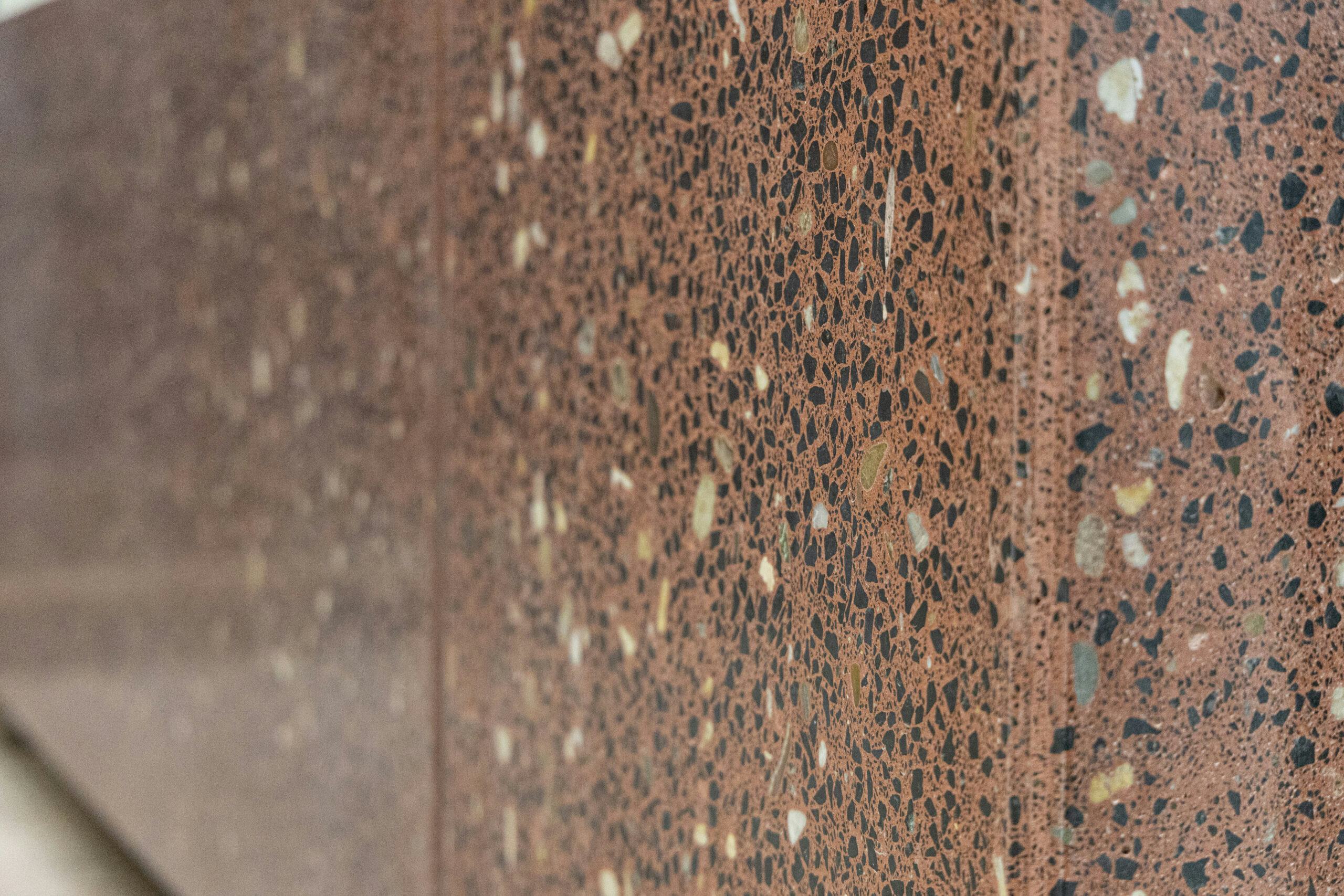 Kool: ‘Betonpolijsten is een uniek proces. Met een speciale machine toveren we betonnen oppervlakken om tot spiegelgladde, duurzame elementen in iedere gewenste kleur. Denk aan het terrazzo van vroeger. Je kunt na het polijsten de natuurlijke structuur van de grindsoort goed zien.’ Een architect kan hiermee iets unieks ontwerpen, stelt Kool. ‘Een gepolijste gevel in plaats van het gebruik van bijvoorbeeld metselwerkuitstraling is echt iets speciaals. Het is nog niet zo bekend in Nederland en weinig producenten kunnen het maken. Dankzij onze machine kunnen wij dit wél.’
