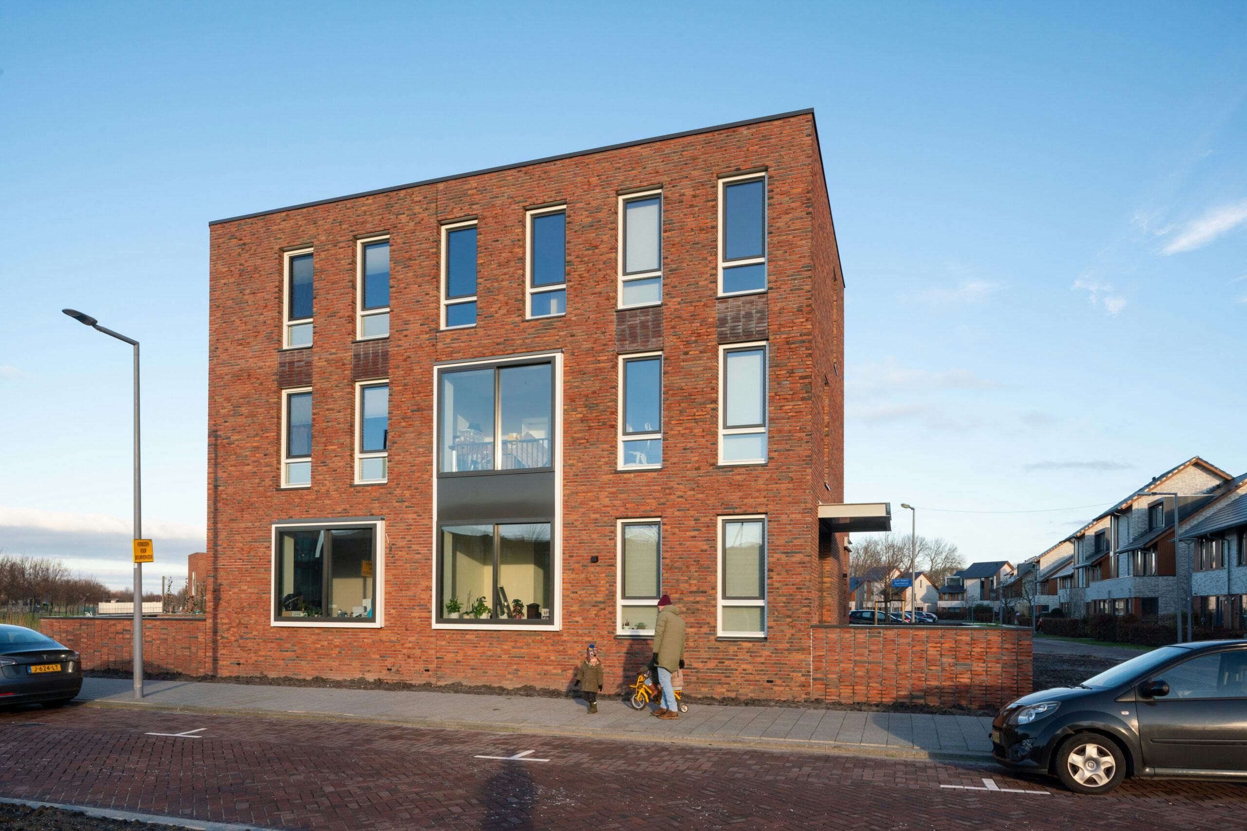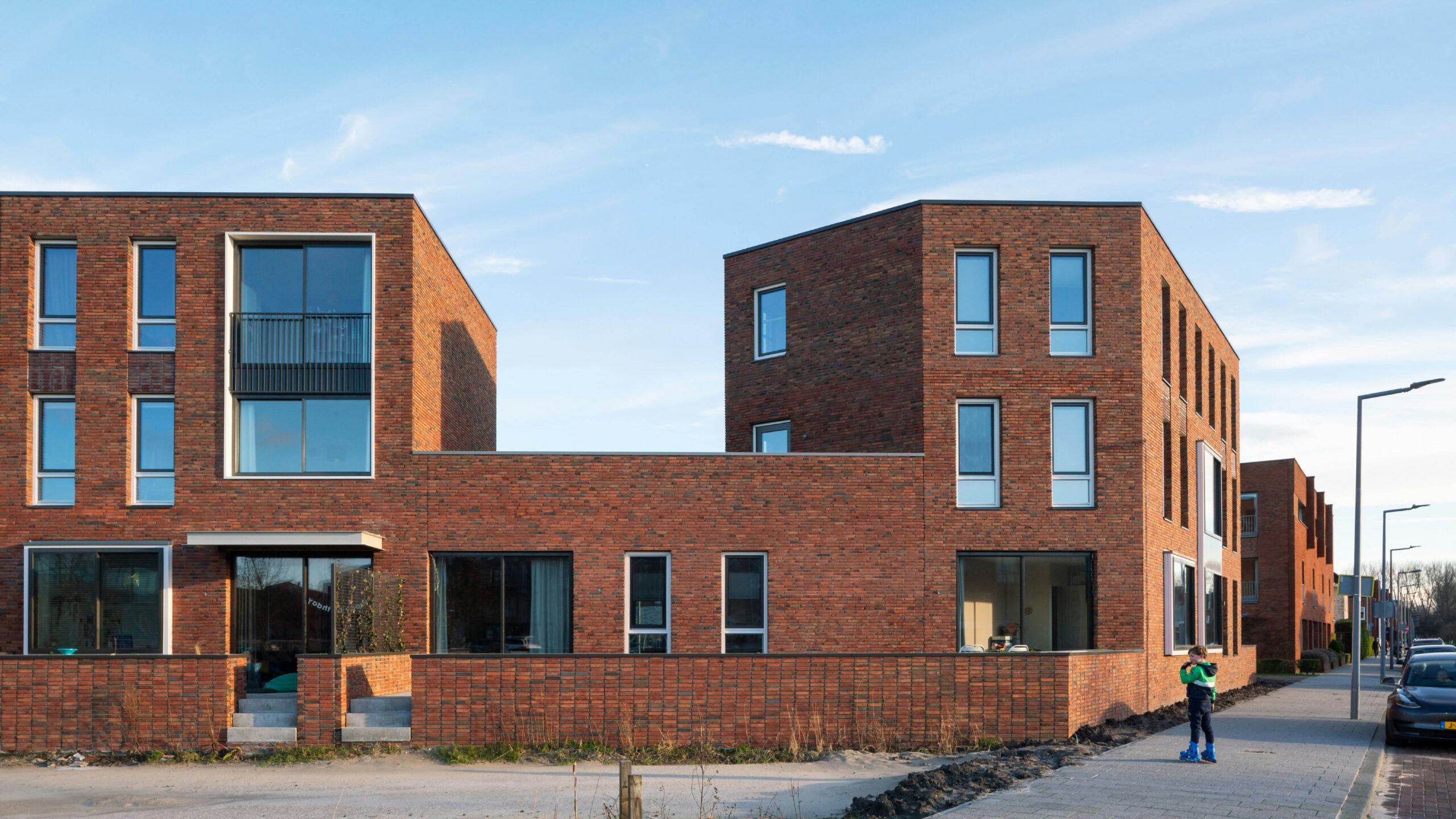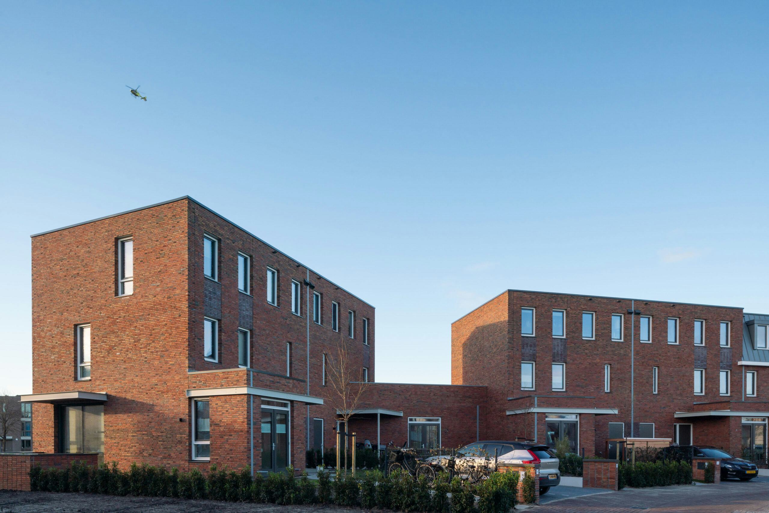 De buitenberging is mooi weggewerkt in het volume van de woning, waarbij de keuken met een grote (en hoge) erker een mooie oriëntatie op de tuin heeft. Een bijzondere toevoeging is de fruitboom die in iedere voortuin is opgenomen en voor een zekere beslotenheid zorgt.
