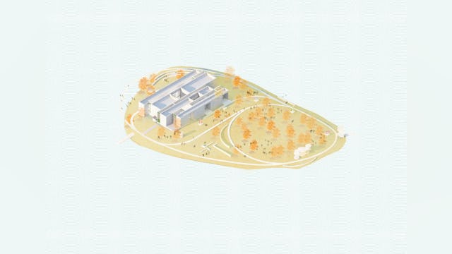 De architecten wilden dat de bezoekers van het gebouw een zachte overgang ervaren tussen gebouw en landschap, tussen binnen en buiten.