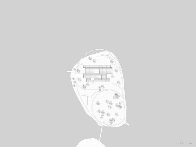 Rondom het museum, begint de tentoonstelling in een beeldentuin. Een reeks bochtige paden nodigen bezoekers uit om het eiland te verkennen. Binnen opent het museum zich naar het landschap en het meer, waardoor bezoekers voortdurend tussen kunst en natuur kunnen wisselen.