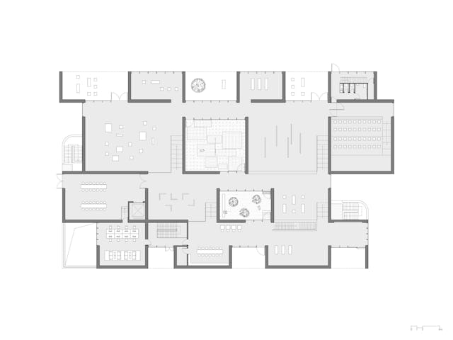 Door twee traditionele museumtypologieën – de conventionele ‘geleide’ routing en het ‘free flow’-plan – samen te voegen tot één museum, creëerden de architecten een gebouw met ‘vloeibare ruimtes’, waar bezoekers hun eigen route kunnen verkennen en kiezen – Schinkels Altes Museum meets Mies' Neue Nationale Galerie!