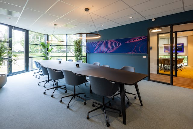 Zowel op gebouwniveau als in het interieur was vanzelfsprekend grote aandacht voor circulariteit en duurzaamheid. Wat behouden kon blijven is behouden. Waar mogelijk zijn bestaande wanden blijven staan, glazen puien en (geluidwerende) deuren werden hergebruikt op nieuwe posities en er werd niet gestuct.