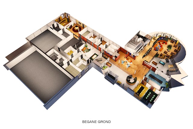Op het hoofdkantoor worden zowel radio- als tv-uitzendingen gemaakt. Het interieur stimuleert de onderlinge communicatie en nodigt uit tot spontane ontmoetingen tussen de verschillende afdeling. Je voelt er de dynamiek die hoort bij het werk van Omroep Brabant.