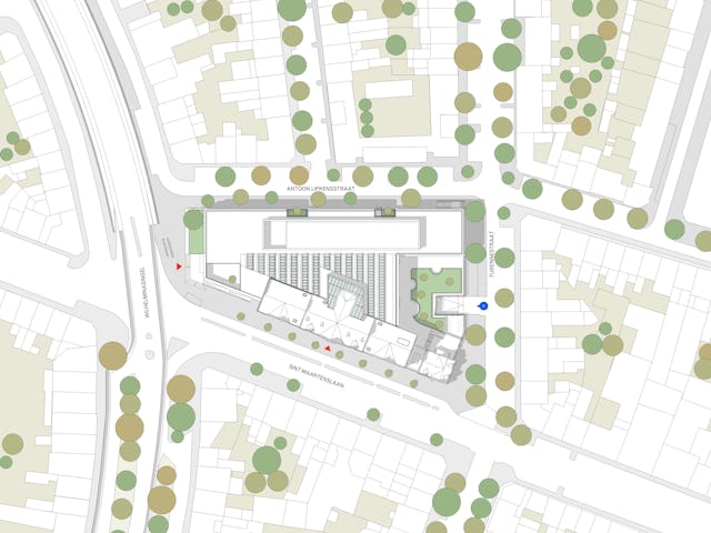 De open opzet van het dsm-firmenich hoofdkantoor geeft een impuls aan de bedrijvigheid in de stadswijk ‘Wyck’. De nieuwbouwbuitengevel heeft een subtiele differentiatie met een ‘setback’ op de 3e laag. Met groene patio’s aan de westgevel zorgt dit voor een natuurlijke aansluiting op het karakter van de omringende buurt.