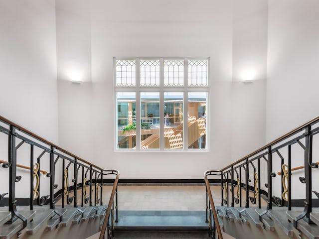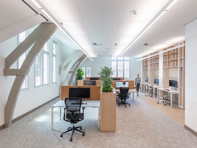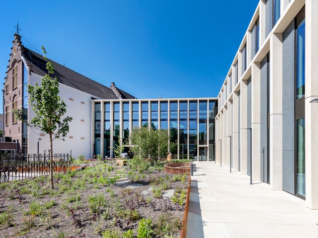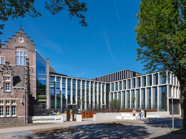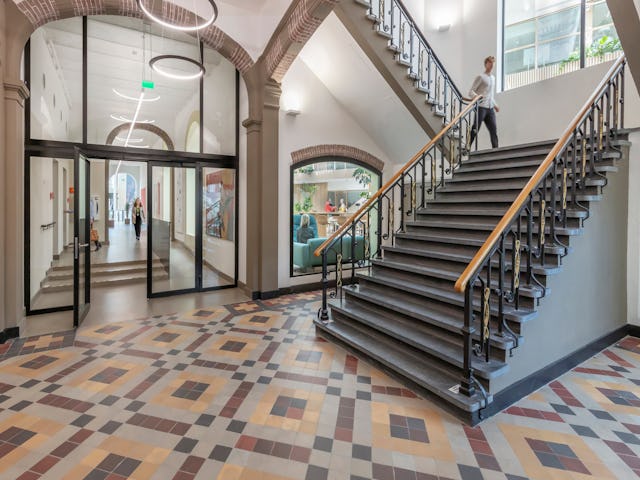 Het neorenaissancestijl Rijksmonument uit 1911 is in historische grandeur en sfeer gerenoveerd. Een eeuw geleden opende een technische ambachtsschool voor jongens hier haar deuren. De gebouwstructuur met hoge praktijklokalen, gangen en hoofdtrappen is bewaard gebleven en historische details zoals de draagbalken van het dak, zijn geaccentueerd. Daarbij heeft het pand een technisch-innovatieve opwaardering ondergaan om te voldoen aan de Paris Proof ‘carbon-neutral’ ambities. Het combineren van de verschillende eisen was een complexe puzzel. Zo staan de gevraagde ventilatievouden van de Breeam Outstanding certificering op gespannen voet met de mogelijkheden binnen een rijksmonument.