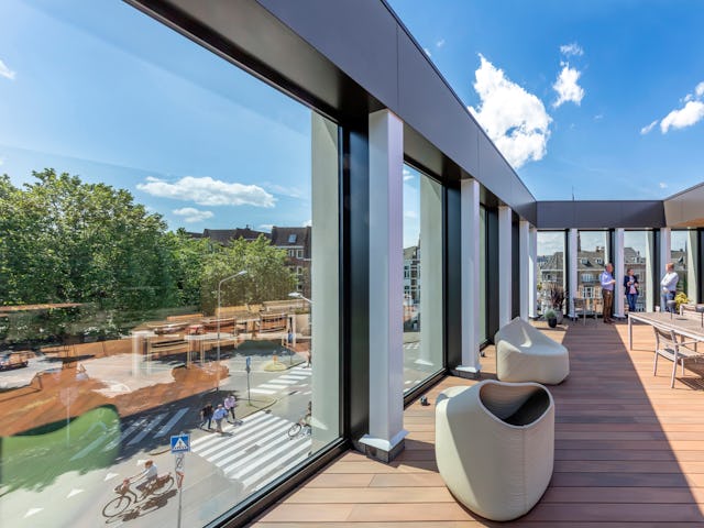 Het gebouw biedt op veel plekken contact met ‘buiten’, zoals bij het dakterras boven de hoofdentree met een weids uitzicht. De werkplekken liggen grotendeels aan de buitengevel, waardoor medewerkers overal van veel daglicht kunnen genieten. In het atrium zijn veel natuurlijke elementen toegevoegd zoals plantgroepen met bomen om het welzijn en het milieubewustzijn van de gebruikers te bevorderen.