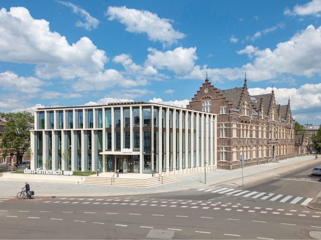 Het streven is altijd geweest om verleden, heden en de toekomst met elkaar te verbinden. Het ensemble van twee gebouwen bestaat uit een oude Ambachtsschool en een 3-laags kantoornieuwbouw boven de bestaande parkeergarage van een voormalige bioscoop. Geïnspireerd door de verticale raampartijen van het monument, vormt het gevelontwerp van de nieuwbouw een sterk ritme van verticale lamellen op één plint, waardoor het atrium en de kantoren een samenhangende en herkenbare identiteit krijgen. De implementatie van zonnepanelen aan de gevels en op het dak, gepaard met slimme gebouwsensoren maken dit ontwerp ultra duurzaam.