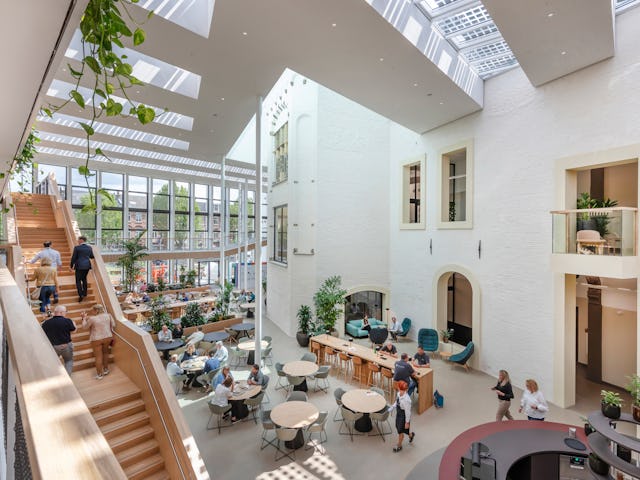 Uiteindelijk heeft de complexe opgave, met hoge duurzame ambities voor het gebouw, de omgeving en met respect voor het rijksmonument, geleid tot een uniek dsm-firmenich hoofdkantoor dat vooruitgang tot leven brengt.