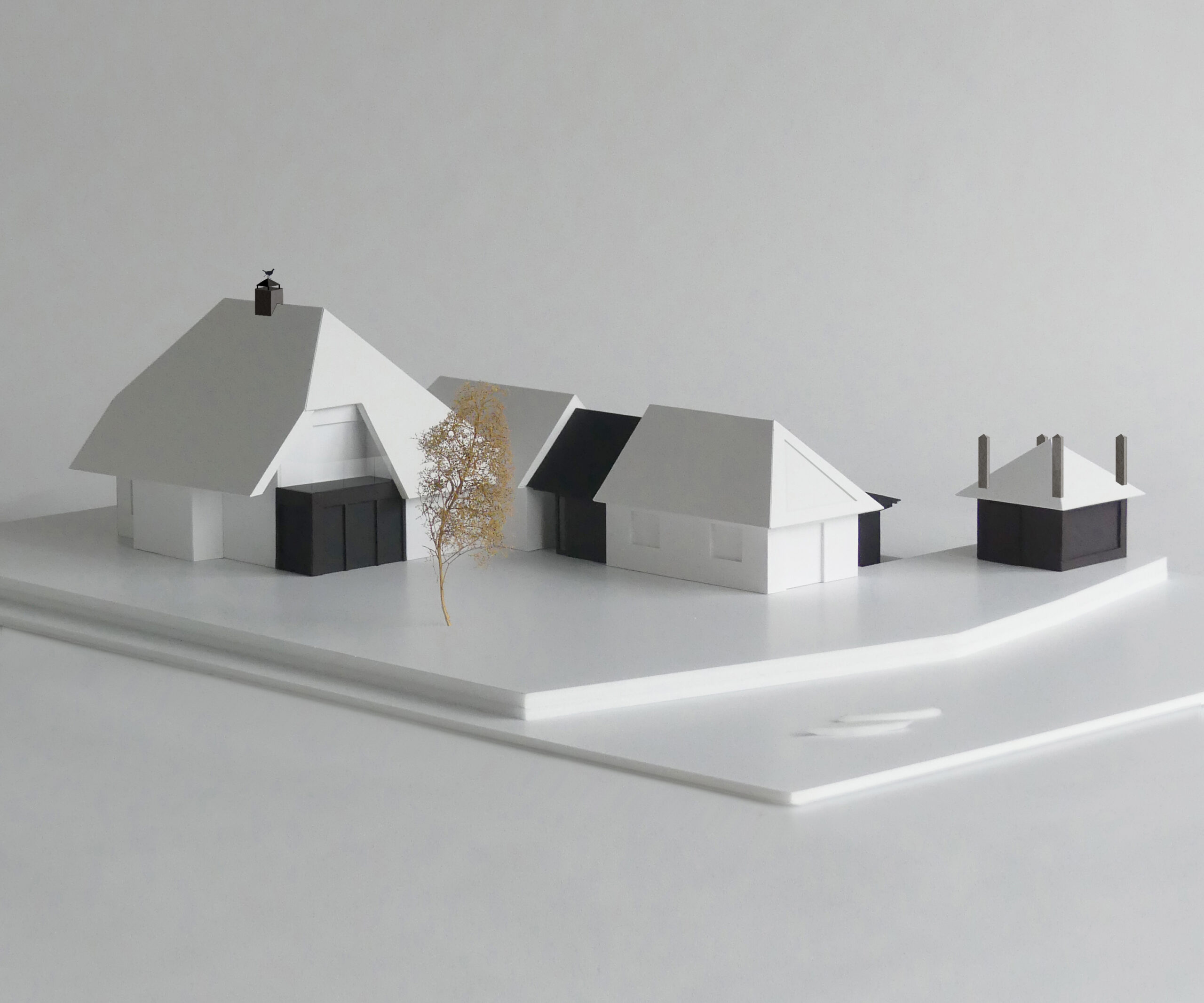 Met een aantal strategische ingrepen is de woonkwaliteit van het huis vergroot. Door middel van een tweelaagse uitbouw is het hoofdhuis verbonden met één van de bijgebouwen, dat nu fungeert als gastenverblijf. Er is een serre toegevoegd aan het huis om de woonruimte op de begane grond te vergroten. Daarnaast is er een boothuis gerealiseerd op het perceel en is de vrijstaande hooischuur verbouwd tot werkruimte.