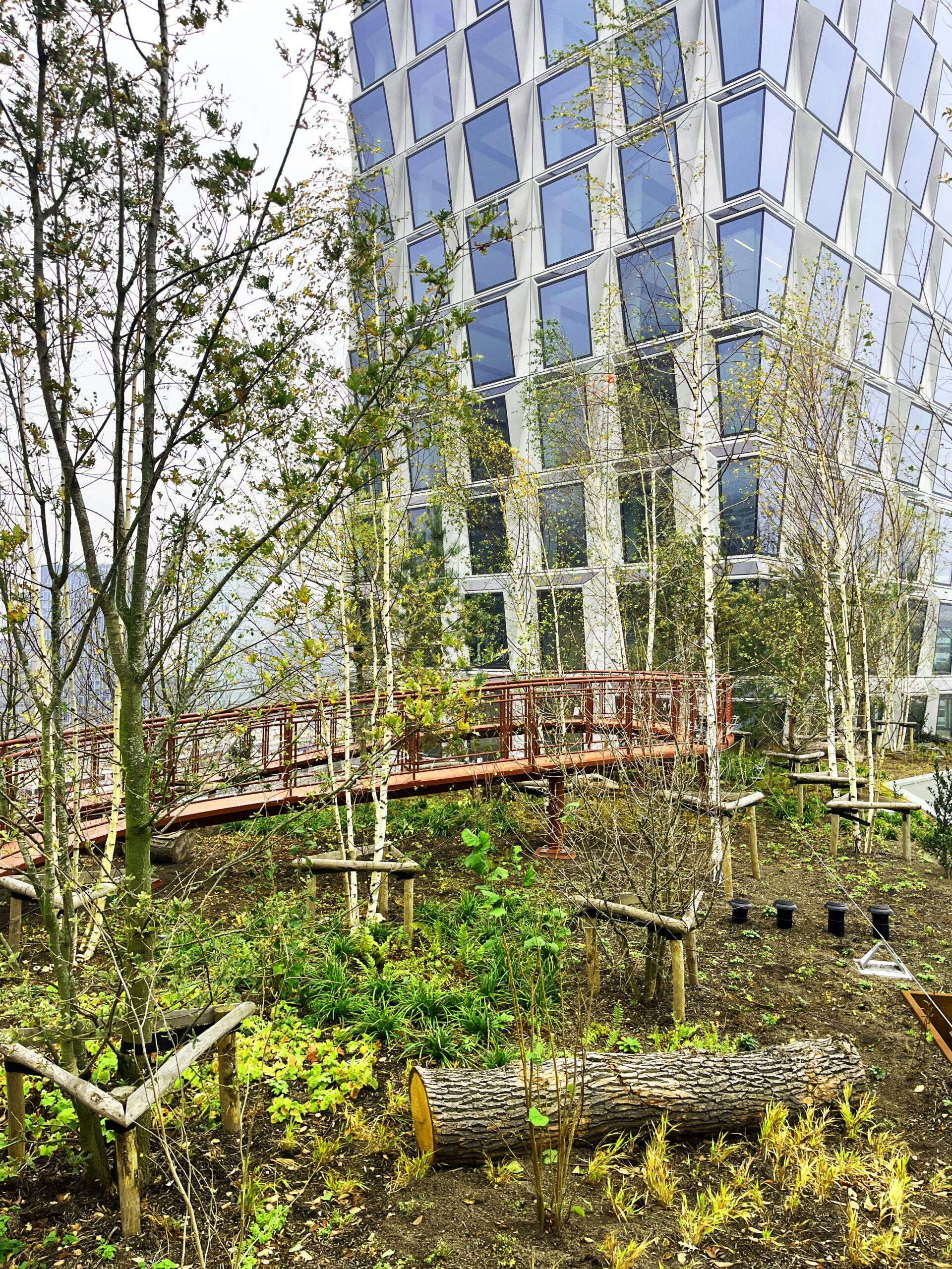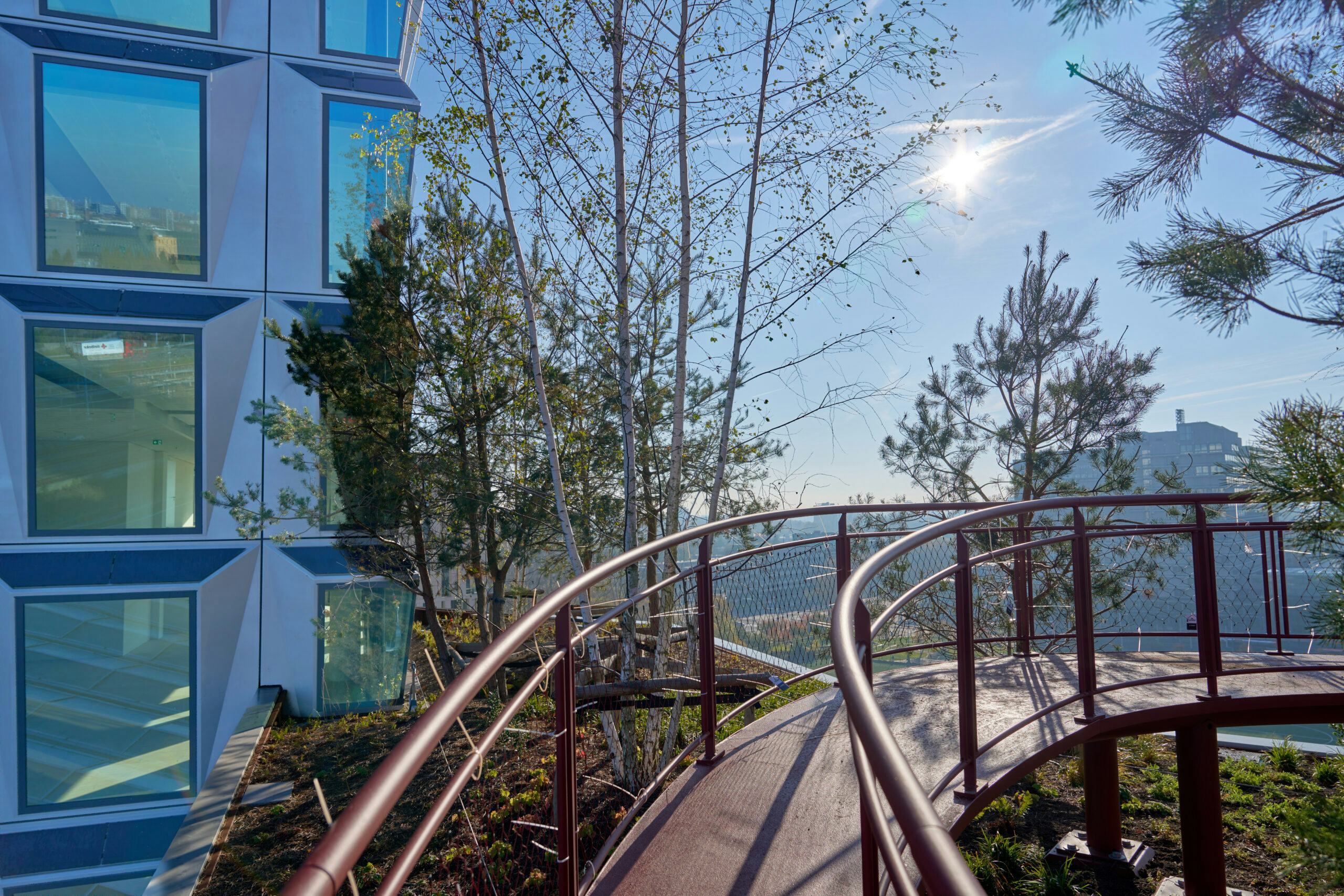 Een opvallend onderdeel is het stadsbos op 35 meter hoogte. Dit bos biedt niet alleen een plek om van de natuur te genieten, maar ook een oplossing tegen hitte en wateroverlast. Een zwevend pad tussen de bomen geeft bezoekers een panoramisch uitzicht over de stad. Het ontwerp draagt bij aan biodiversiteit in een dichtbebouwde omgeving. Het landschapsontwerp beslaat 40 procent van het plot.