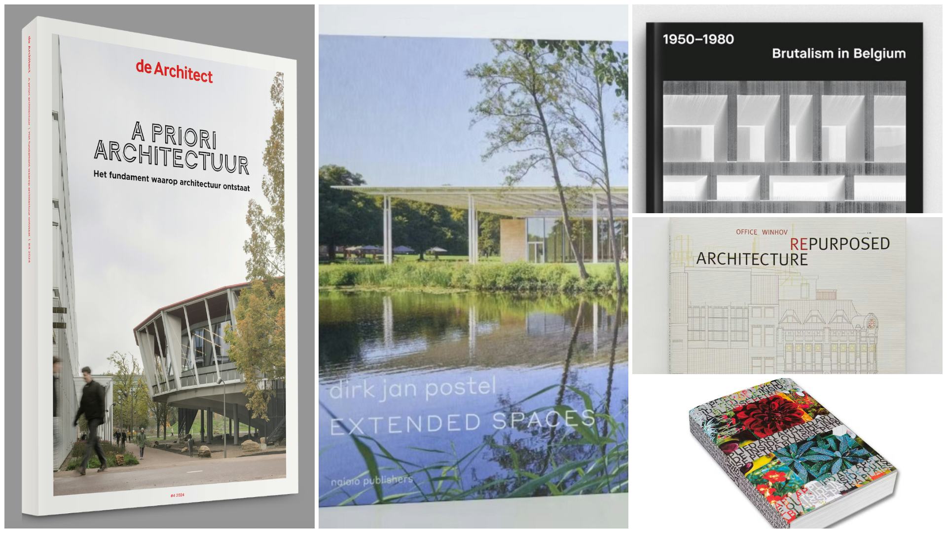 Extended Spaces over het werk van Dirk Jan Postel (€49,95) valt volgens Keijzer in de laatste categorie: zijn uitgebreide portfolio is verzameld en in een boekvorm gegoten. Architecture Repurposed van Office Winhov (€39,95) en Art Applied van Inside Outside (€80,-) plaatste ze in eerste. ‘Deze boeken vertellen een gecureerd verhaal dat in een sterke grafische vorm is gegoten.’