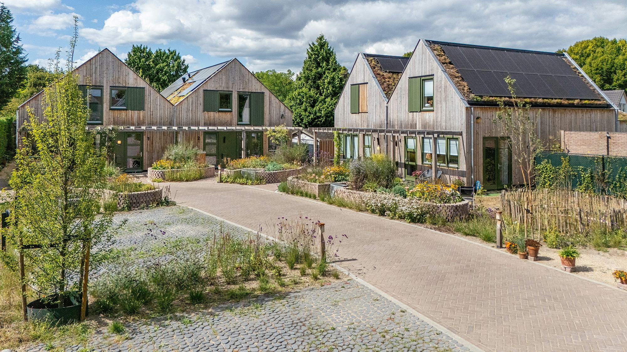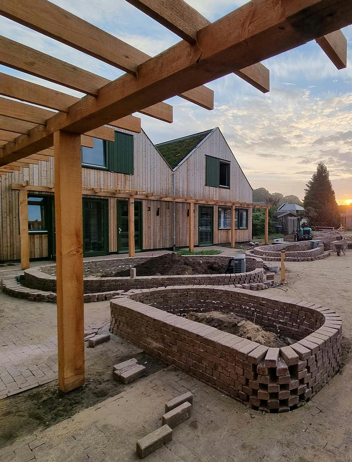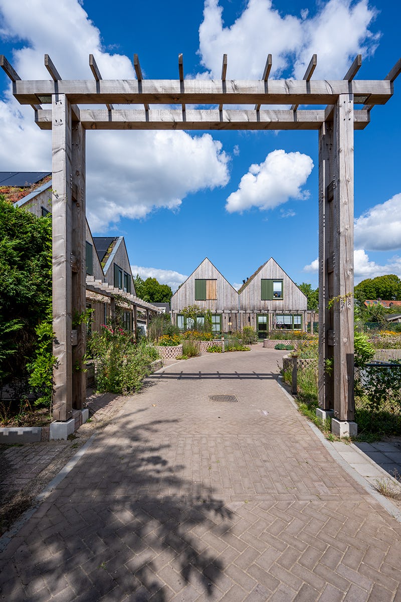De woningen, uitgevoerd in houtskeletbouw en CLT (cross laminated timber) vloeren, maken gebruik van natuurlijke materialen zoals vlas en houtvezel voor isolatie. Deze materialen zorgen voor een goed binnenklimaat en dragen bij aan de duurzaamheid van het project, aangezien CO2 in het hout wordt opgeslagen. De gevels zijn uitgevoerd in natuurlijk vergrijzend hout en de woningen zijn volledig gasloos, met een warmtepomp voor verwarming en warm water.