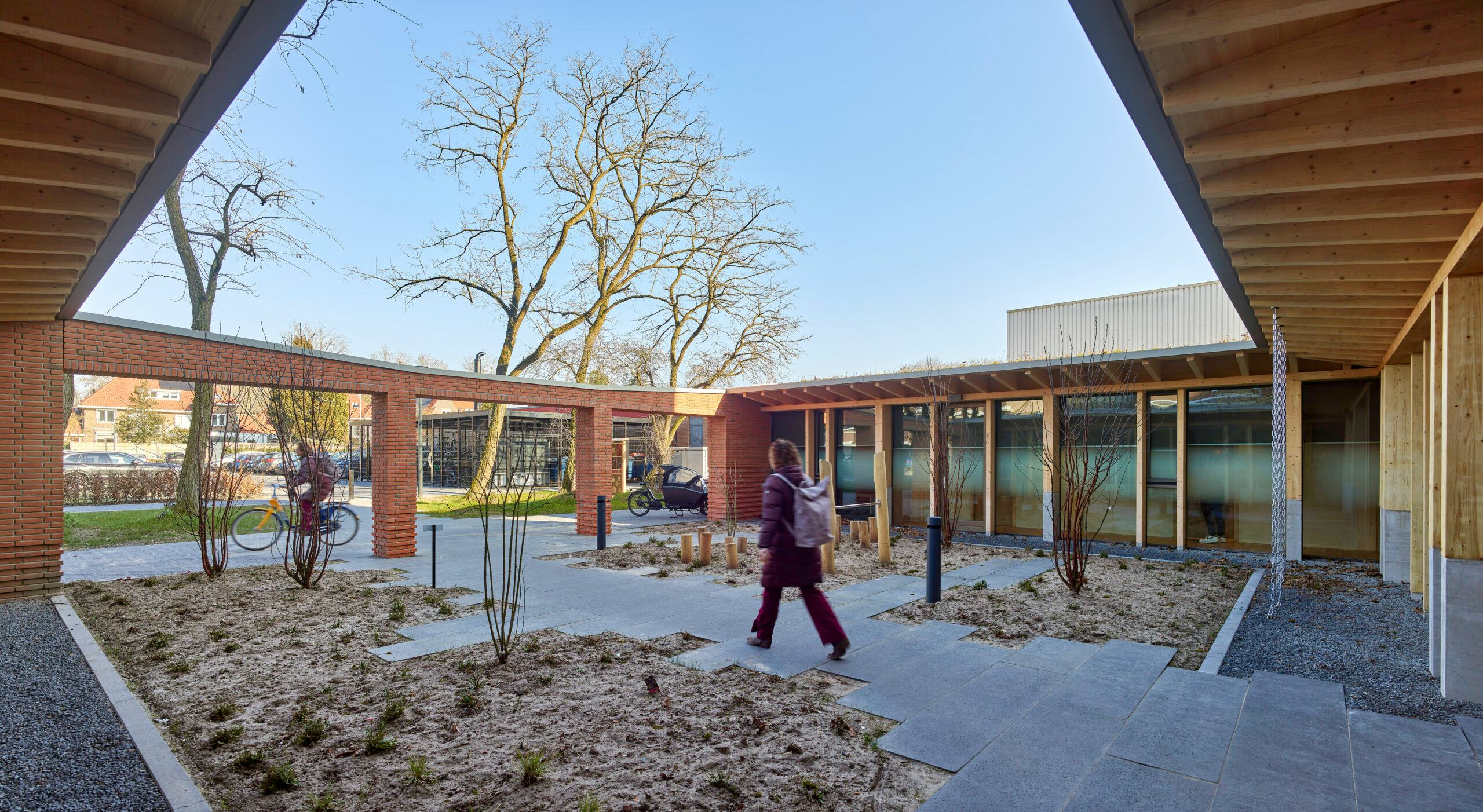 Het budget was beperkt: 2550 euro per vierkante meter. Door een compacte kubusvorm, strategische zonwering en efficiënte compartimentering zijn de bouw- en onderhoudskosten beperkt gebleven. De natuur krijgt ook ruimte met een sedumdak, nestkasten en grotendeels behouden bomen.