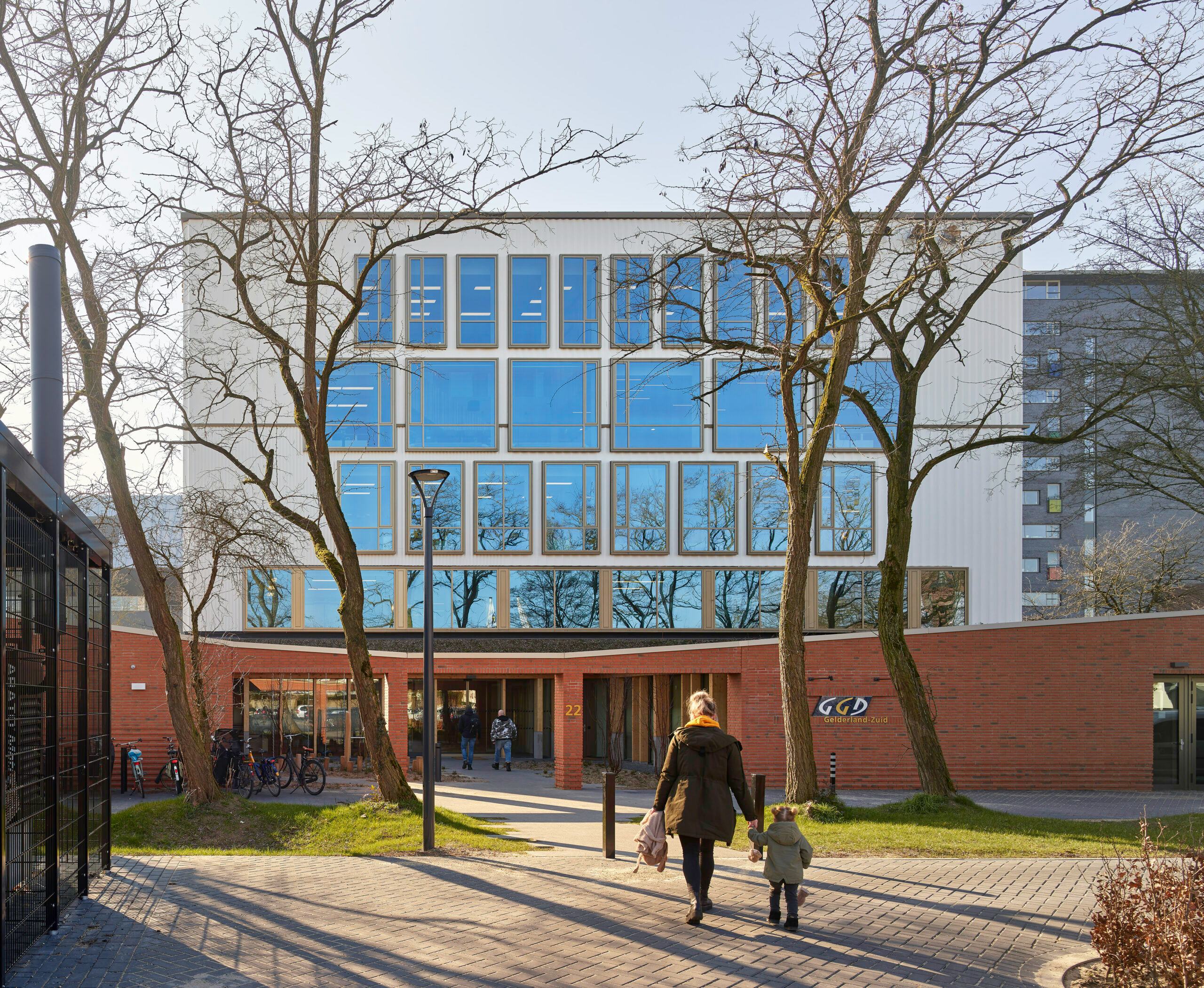 De solide plint van het gebouw beschermt de kwetsbare kern, die voorzien is van gevelpatronen geïnspireerd op de kunst van Jan Schoonhoven en verfijnde bloemkozijnen. Twee gelijkwaardige entrees, gesitueerd bij het parkeerterrein en het station, leiden bezoekers via een groene hof naar binnen. De centrale ontvangstbalie zorgt voor duidelijke oriëntatie, en de wachtgebieden bieden keuze tussen openheid en privacy zonder onderscheid te maken tussen verschillende bezoekersgroepen. Daarnaast is er aan twee zijden een hof ontworpen.