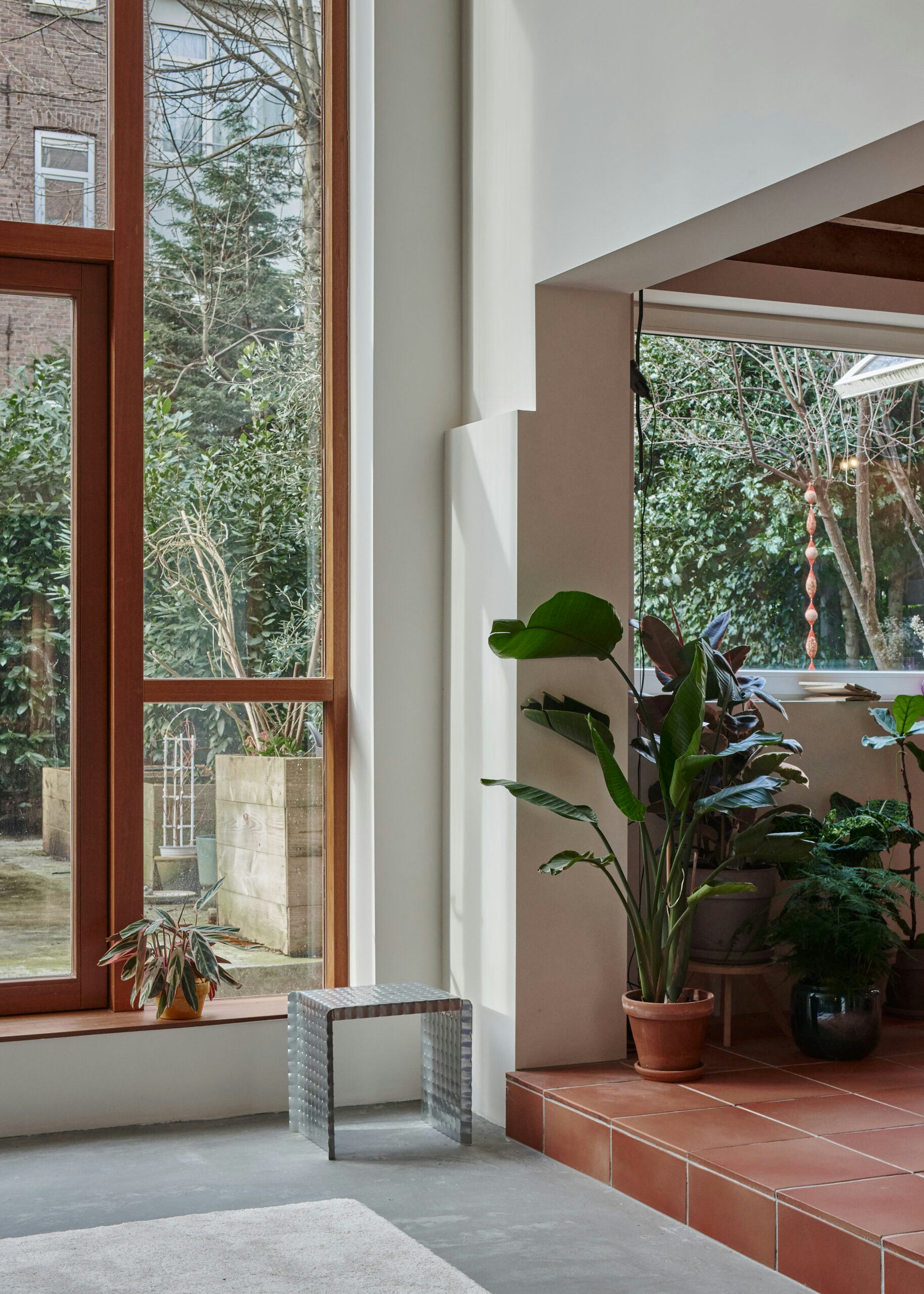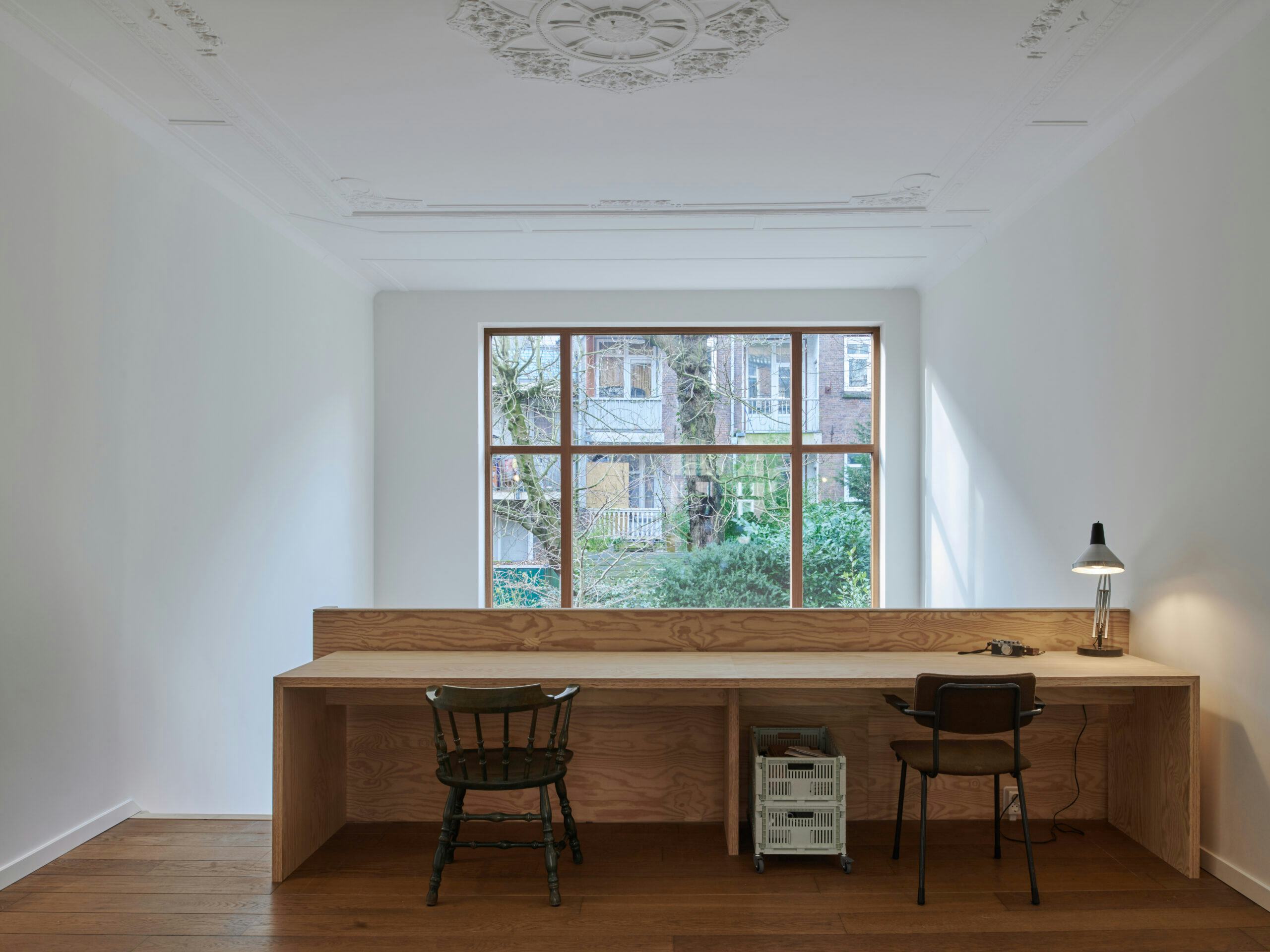 Door goed te kijken naar de bestaande woning kwam de realisatie dat uitbreiden of nieuw bouwen onnodig is. Er is ingezet op hergebruik van materialen en karakteristieke elementen zijn intact gelaten. Het plafond met gipsen ornamenten is gerestaureerd, binnendeuren, houten vloer en stalen frames zijn hergebruikt en originele wandafwerkingen hersteld. De funderingsvloer is geïsoleerd en nieuwe ingrepen zoals de vide met een hoogwaardig meranti kozijn, zorgen voor meer daglicht en passieve energie.