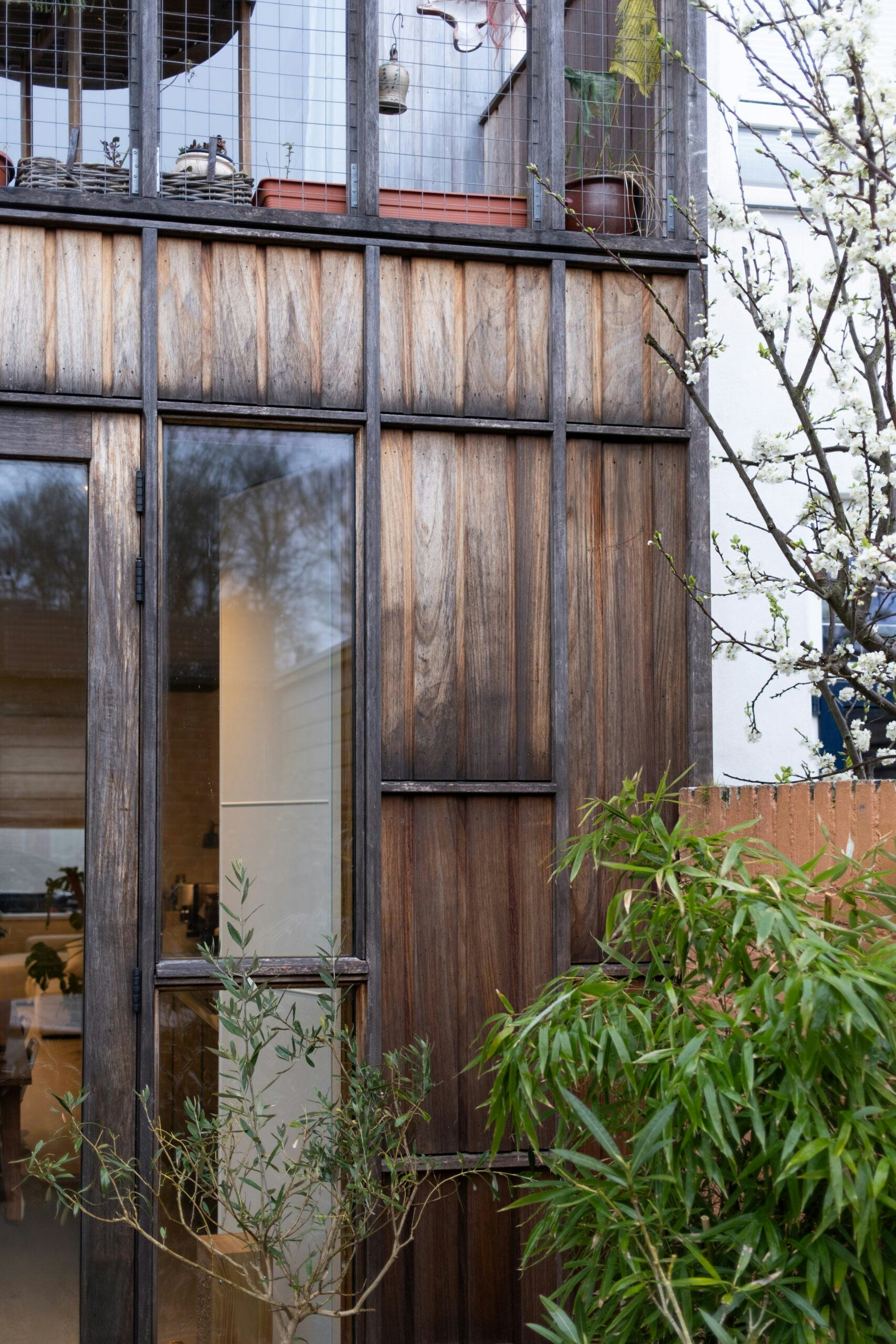 De samenwerking met de Fraké-houtleverancier was essentieel voor de uitstraling van het exterieur. De keuze voor dit materiaal, dat door de elementen wordt beïnvloed, gaf ons de kans om gezamenlijk te onderzoeken hoe tijd en klimaat de uitstraling van Fraké-hout beïnvloeden.