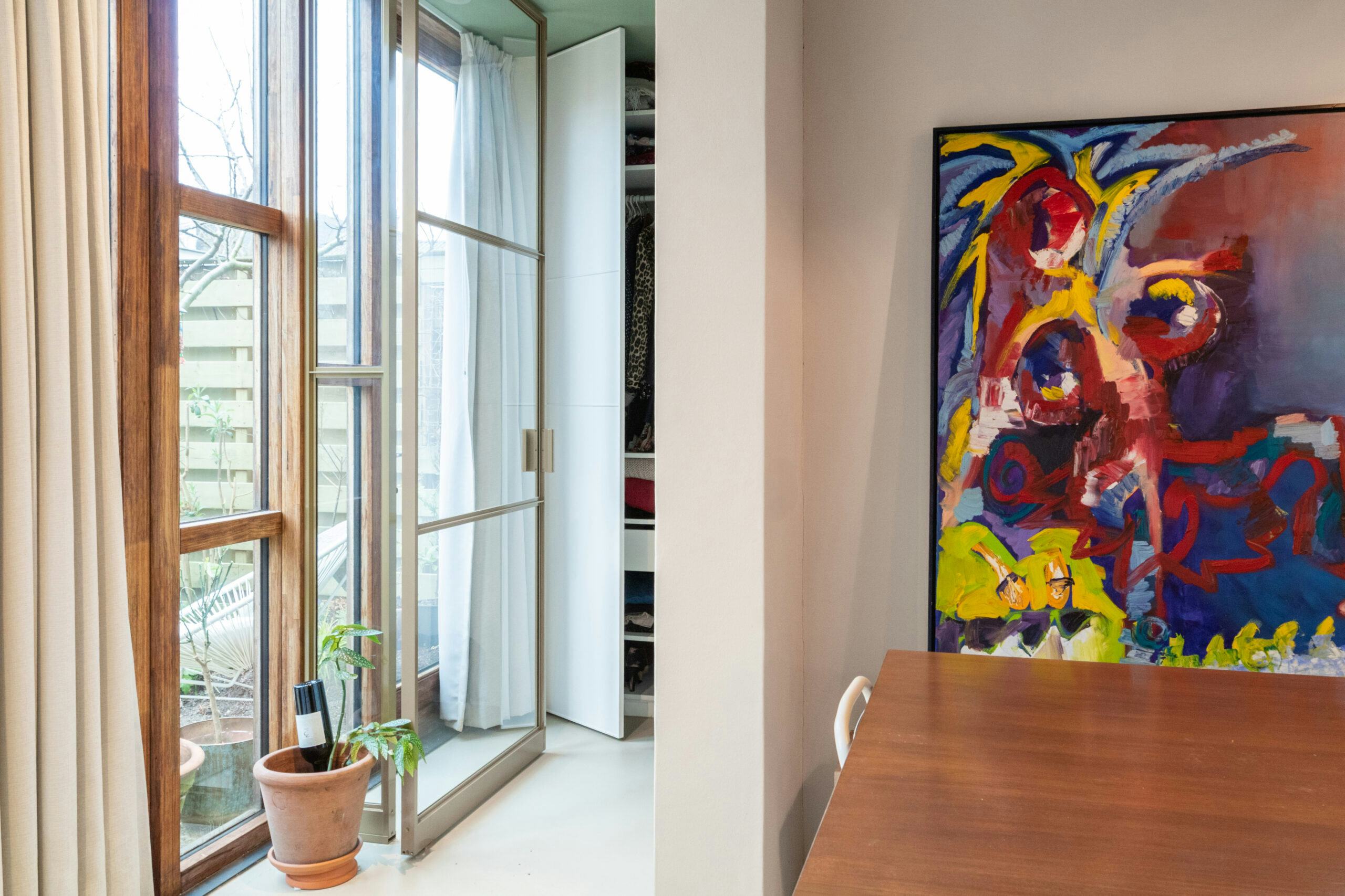 Door een bescheiden aanbouw toe te voegen, waarin een verkeersruimte is opgenomen, ontstond de mogelijkheid om de indeling van de benedenwoning te optimaliseren. Hierdoor kregen de slaapkamer en keuken zicht op de rustige tuin, terwijl de woonkamer werd verplaatst naar de straatzijde, waar voorheen de slaapkamer was. “Door de bescheiden aanbouw kon er groots met de indeling worden gespeeld.”