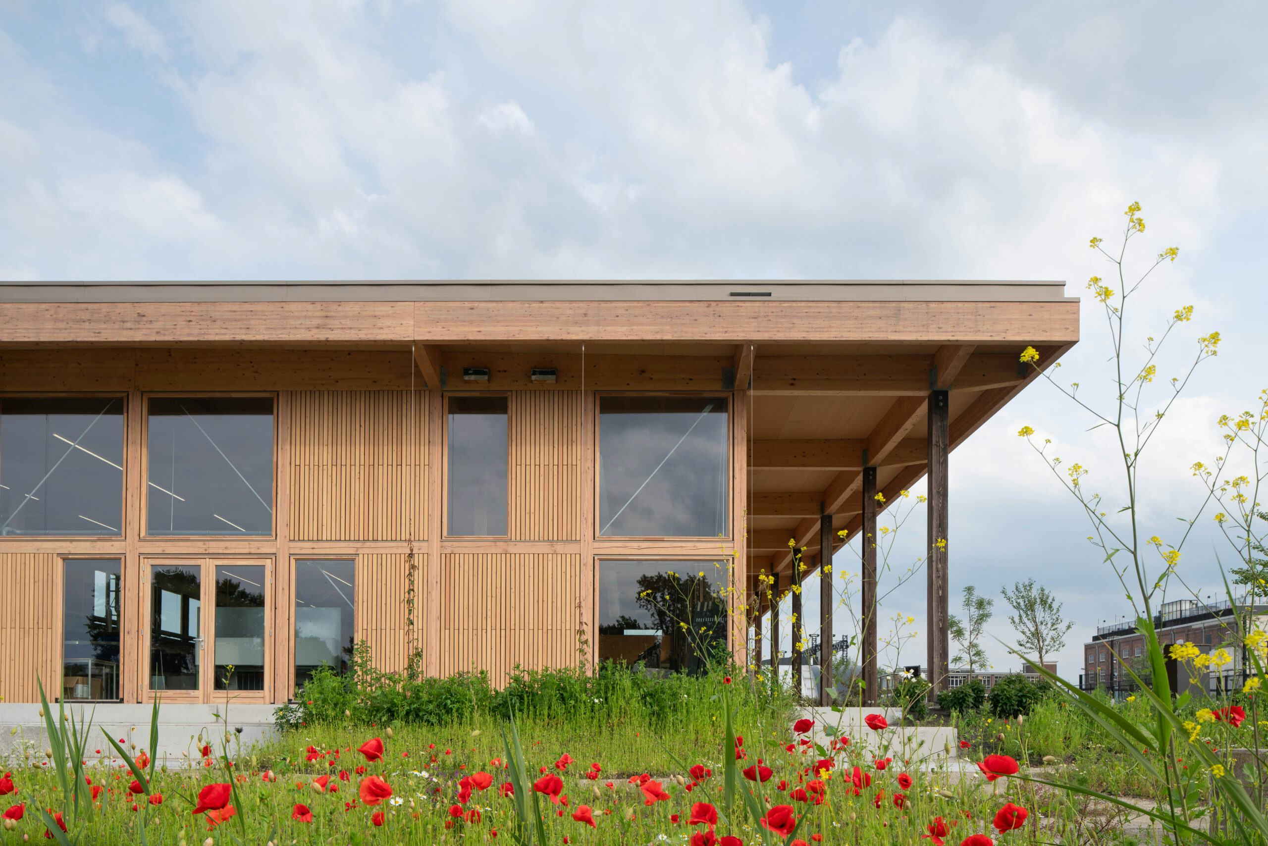 Het gebouw is een aantrekkelijk, alzijdig natuurinclusief paviljoen met als basis een natuurlijke energiehuishouding. Het gebouw houdt warmte op bouwkundige wijze buiten. Een groot overstek houdt zomerzonlicht tegen en zorgt voor een aangename overgang tussen binnen en buiten. Het gebouw voegt geen hittestress toe aan de omgeving, de vergroening van terrein en gebouw is integraal meeontworpen. Spandraden tegen de gevel met bloeiende soorten en klimplanten versterken de vriendelijke uitstraling.