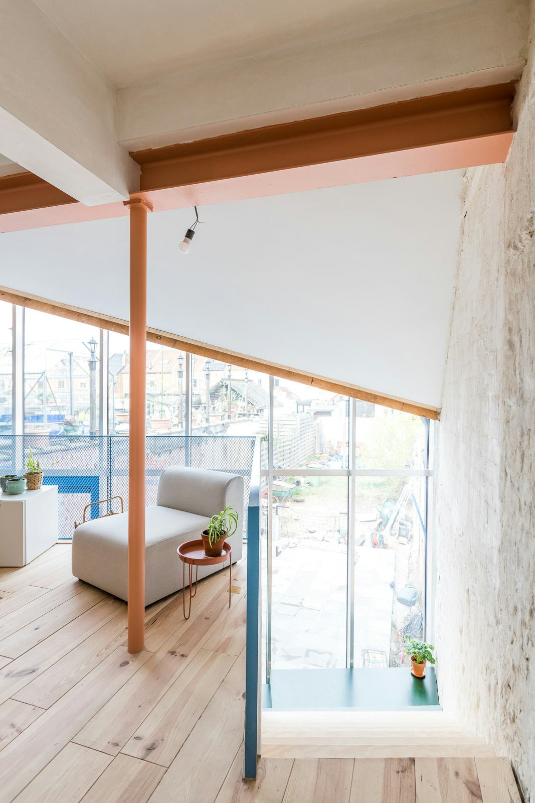 Door het hoofdgebouw terug naar de essentie te herleiden en de bijbouwen te slopen, wordt licht tot diep in de woning binnengetrokken. Om deze nieuwe lichtinval en ruimtelijkheid te behouden, werd er geopteerd om geen nieuwe bijbouw te voorzien. Hierdoor bleef de footprint klein, en konden we binnen een beperkt budget werken. We hebben optimaal gebruik gemaakt van de beschikbare oppervlakte van de bestaande woning. Intern werd er geschoven met de verschillende functies, zo werd de leefruimte ver