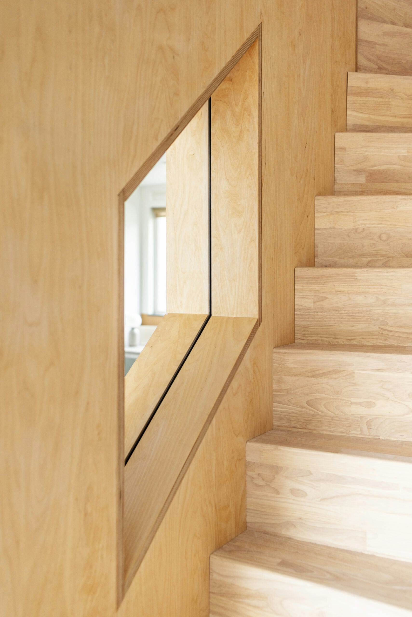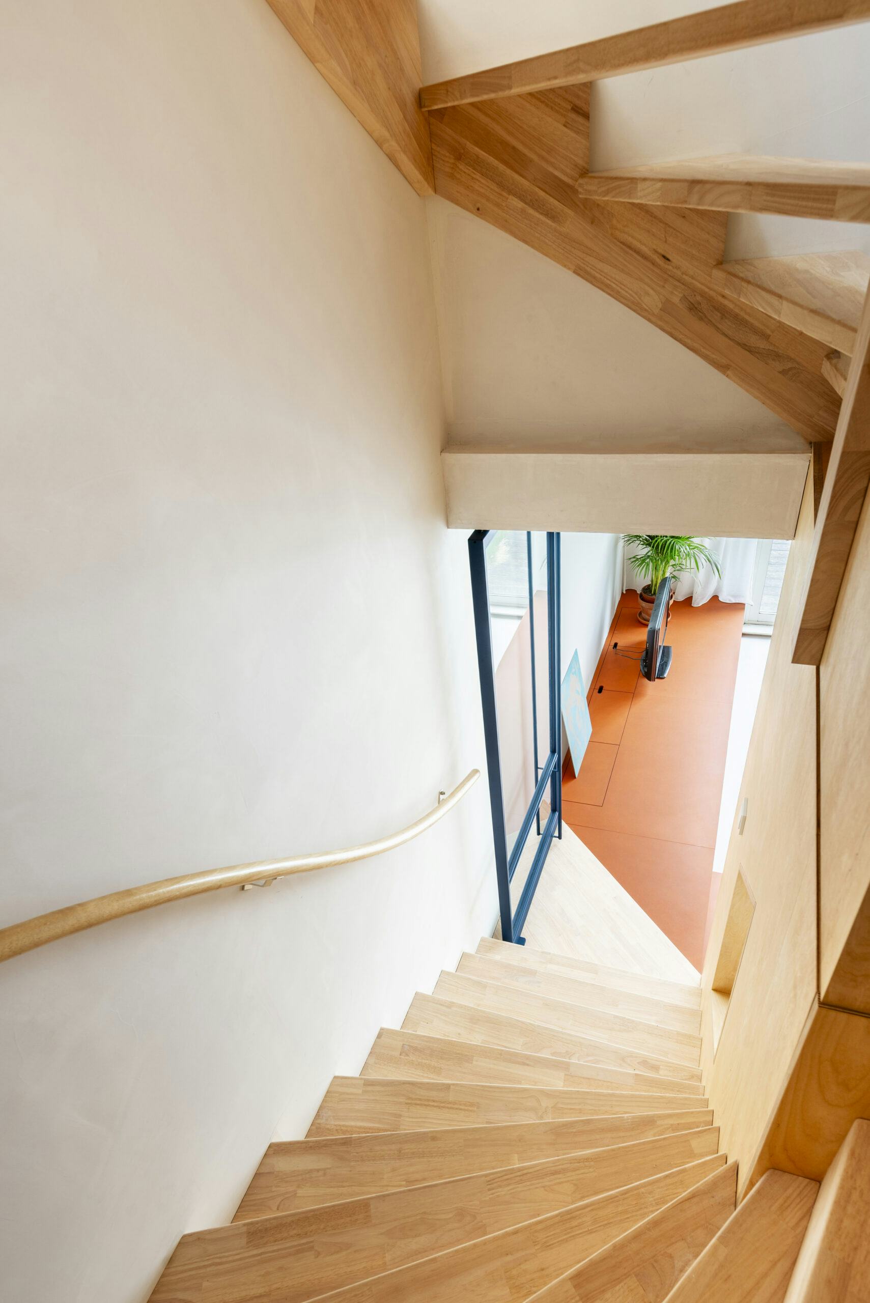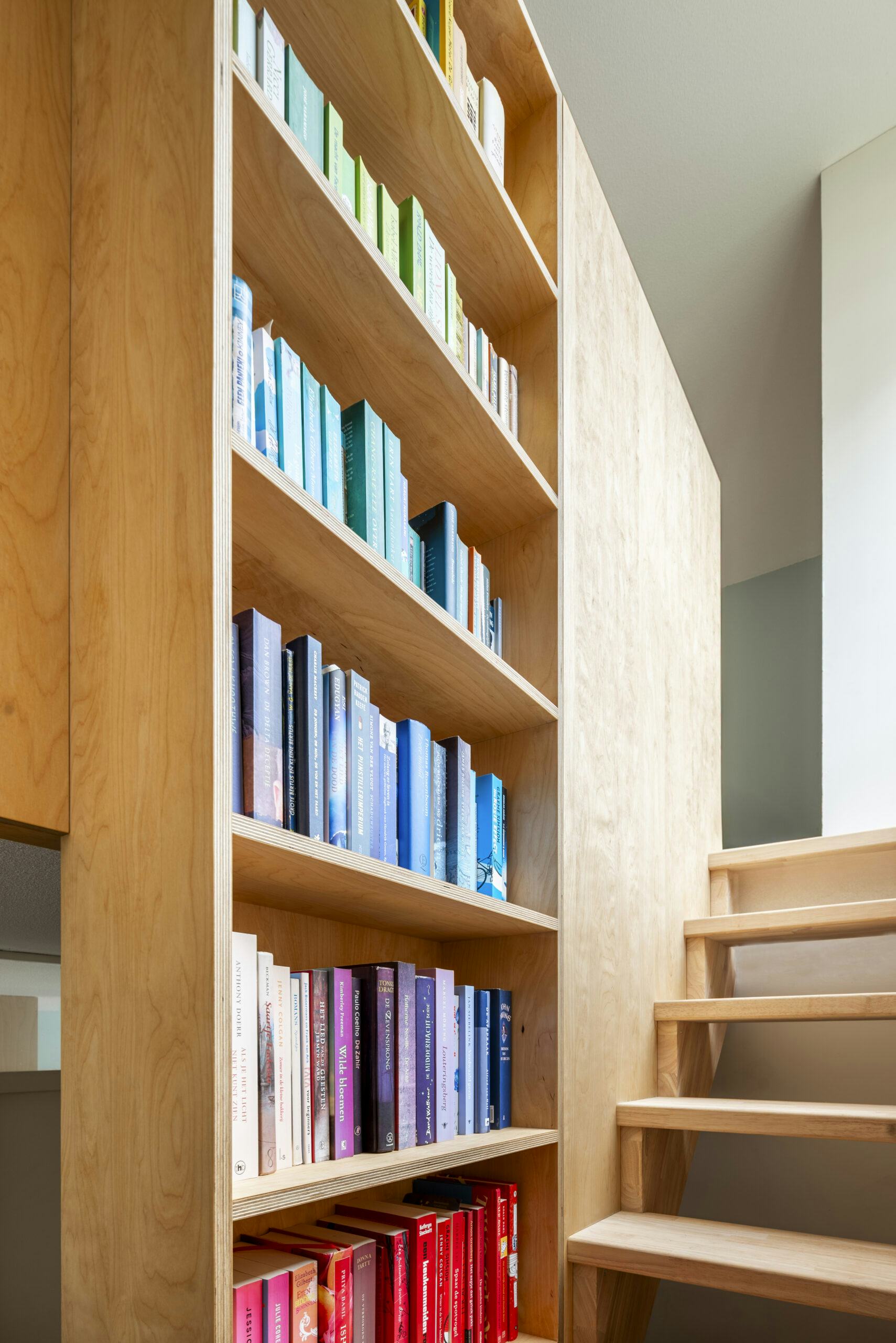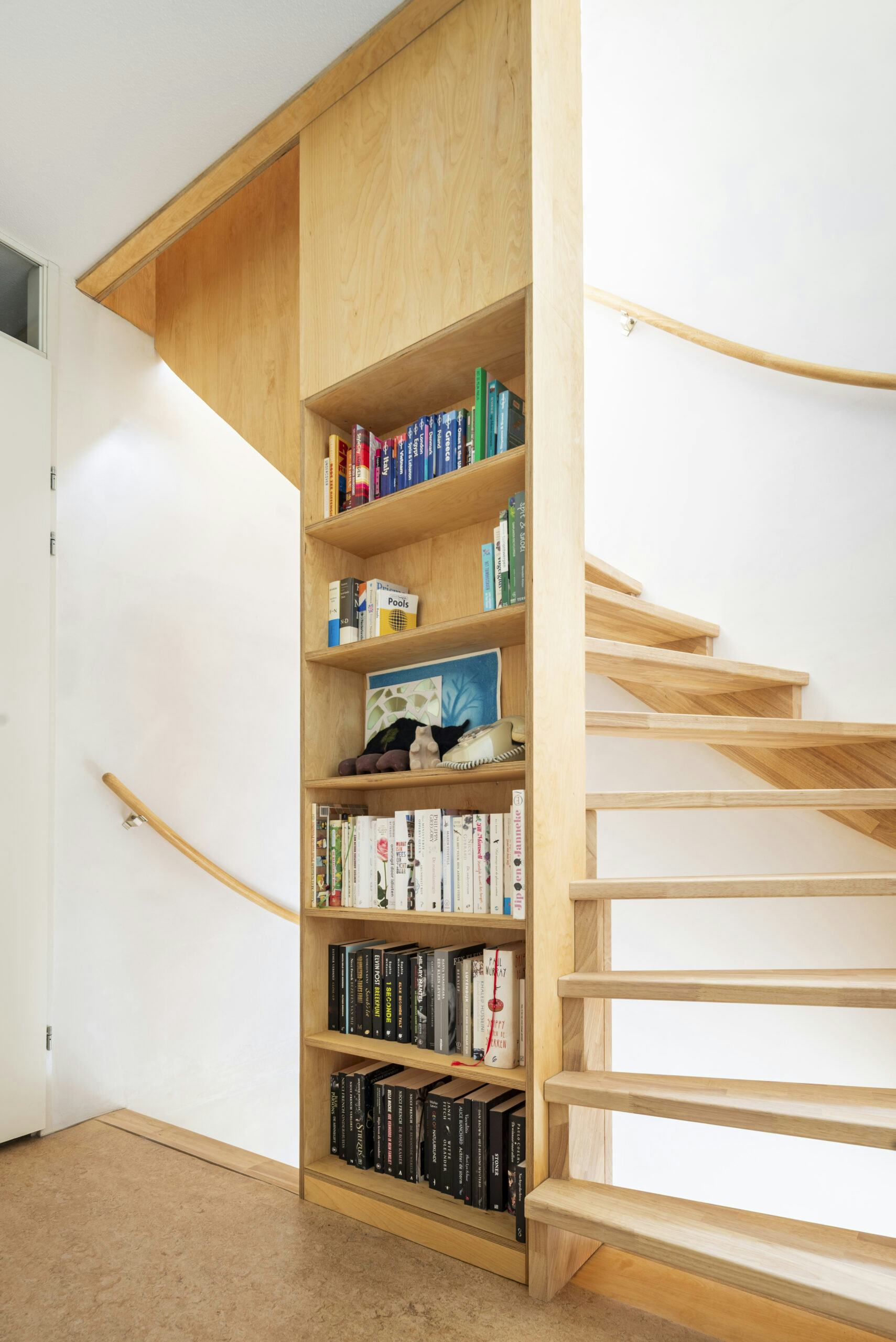De woning voelt opener en dynamischer. De trap werd een sculpturaal object, met lichtinval, zichtlijnen en extra functies als kast, werkplek en afsluitbare verbinding tussen verdiepingen.