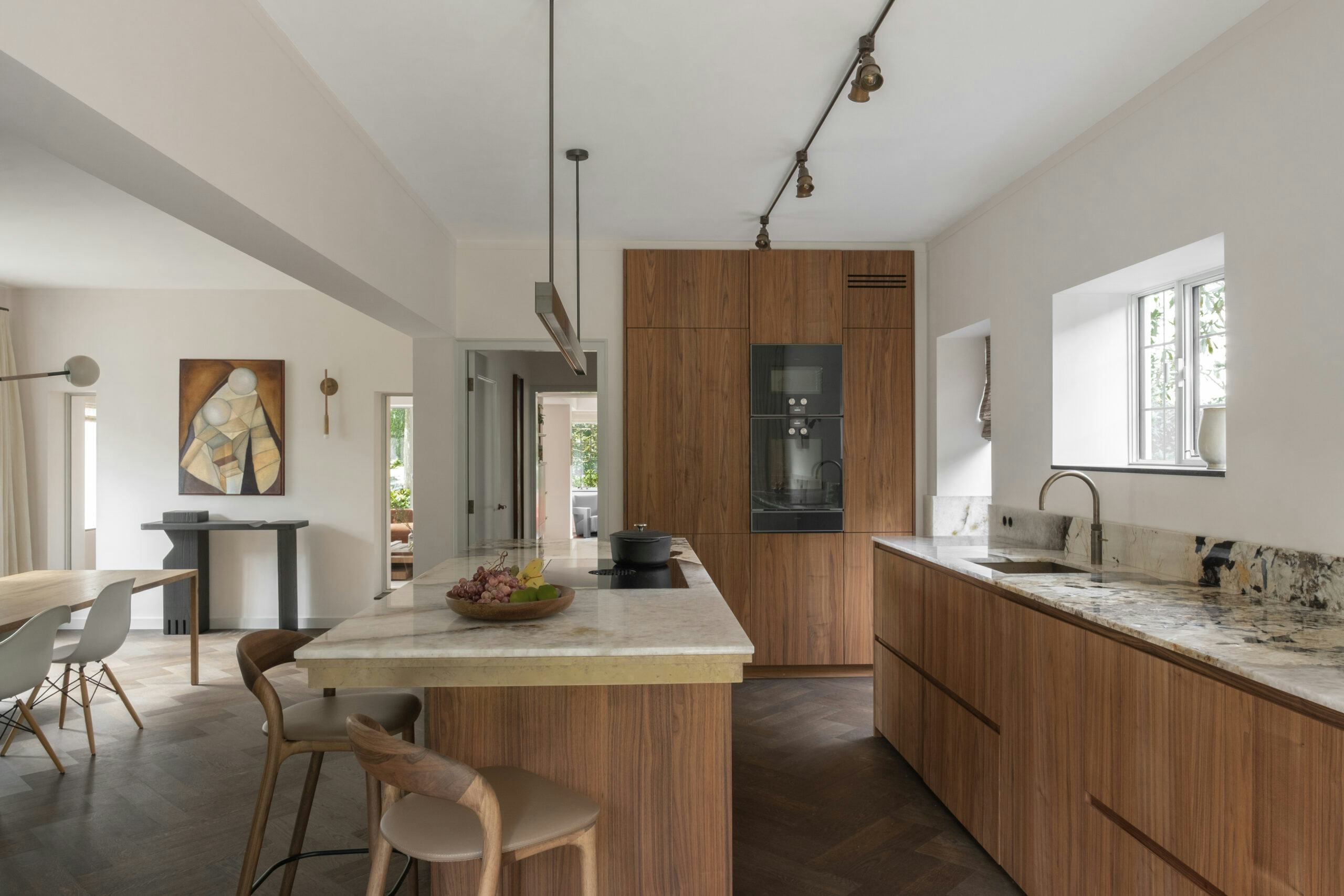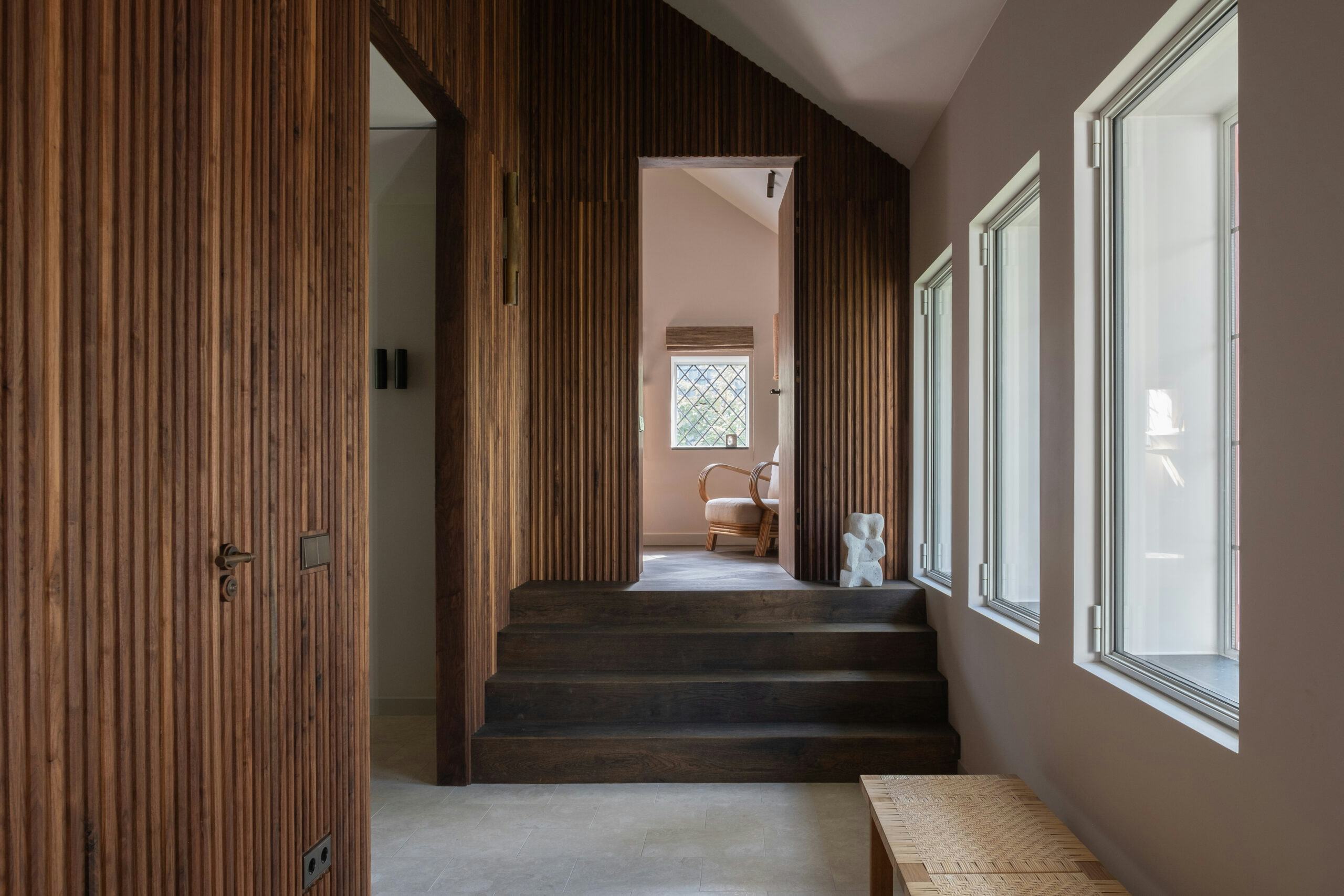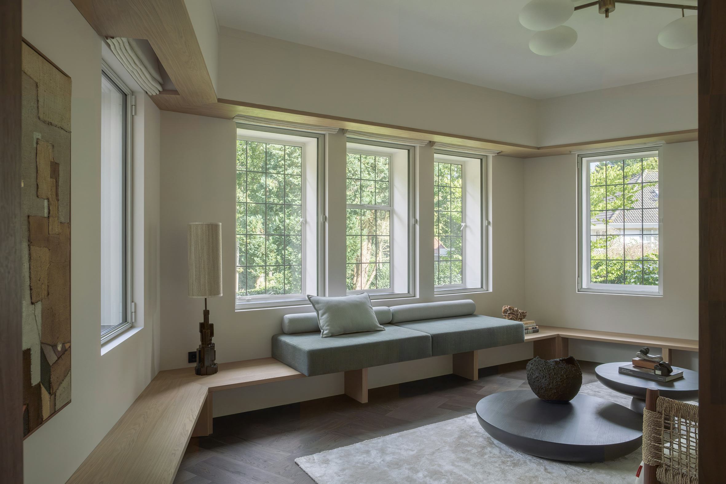 Naarmate het project vorderde, groeide de wens om de natuur niet slechts als achtergrond, maar als wezenlijk onderdeel van het dagelijks leven te omarmen. De buitenwereld werd zorgvuldig omlijst, waardoor binnen en buiten moeiteloos in elkaar overvloeien. Zo is deze monumentale woning getransformeerd tot een harmonieuze leefomgeving waarin elke bewoner zich verbonden voelt met de rust en schoonheid van de natuur. Het huis heeft mede door de toepassing van rijke materialen zijn oude glorie terug