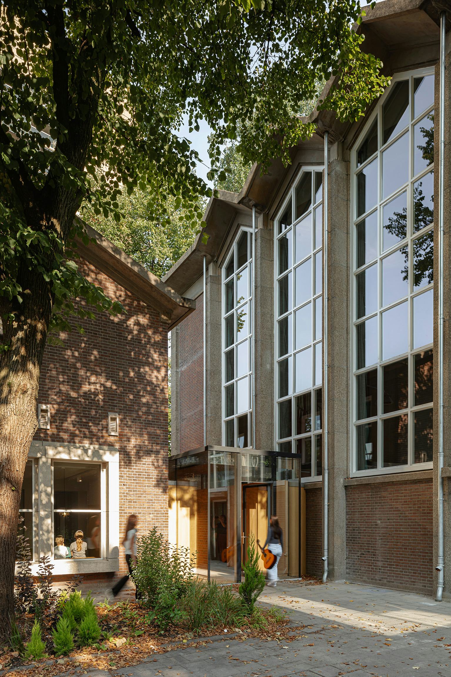 Intensieve samenwerking met verschillende disciplines door het gehele project heeft het verschil gemaakt. Samen met de akoestisch adviseur hebben we de akoestische ingrepen kunnen integreren in de architectuur en het interieur, waardoor de elementen elkaar versterken. In samenwerking met de lichtadviseur zijn het reflecterende plafond van de nieuwe hoofdingang, de revisie van de originele kroonluchters en gewenste verlichtingseffecten zorgvuldig vormgegeven, wat essentieel is voor de beleving.