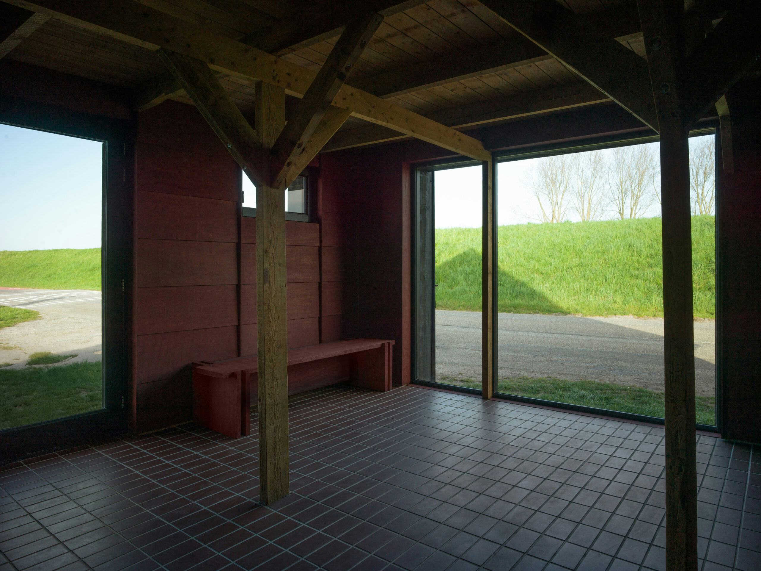 De toegevoegde materialen zijn zo veel mogelijk lokaal, circulair en/of bio-based, aangevuld met industriële producten die zijn geselecteerd op lange levensduur. Voor modern comfort zijn duurzame installaties gekozen die passen bij de schaal en wisselend gebruik. Esthetisch ingepaste PV-panelen wekken stroom op voor een warmtepomp met buffervat die de laagtemperatuur convectoren en vloerverwarming voedt. Het dak vangt regenwater op voor de grijswatertanks verstopt tussen de fundering in de dijk.