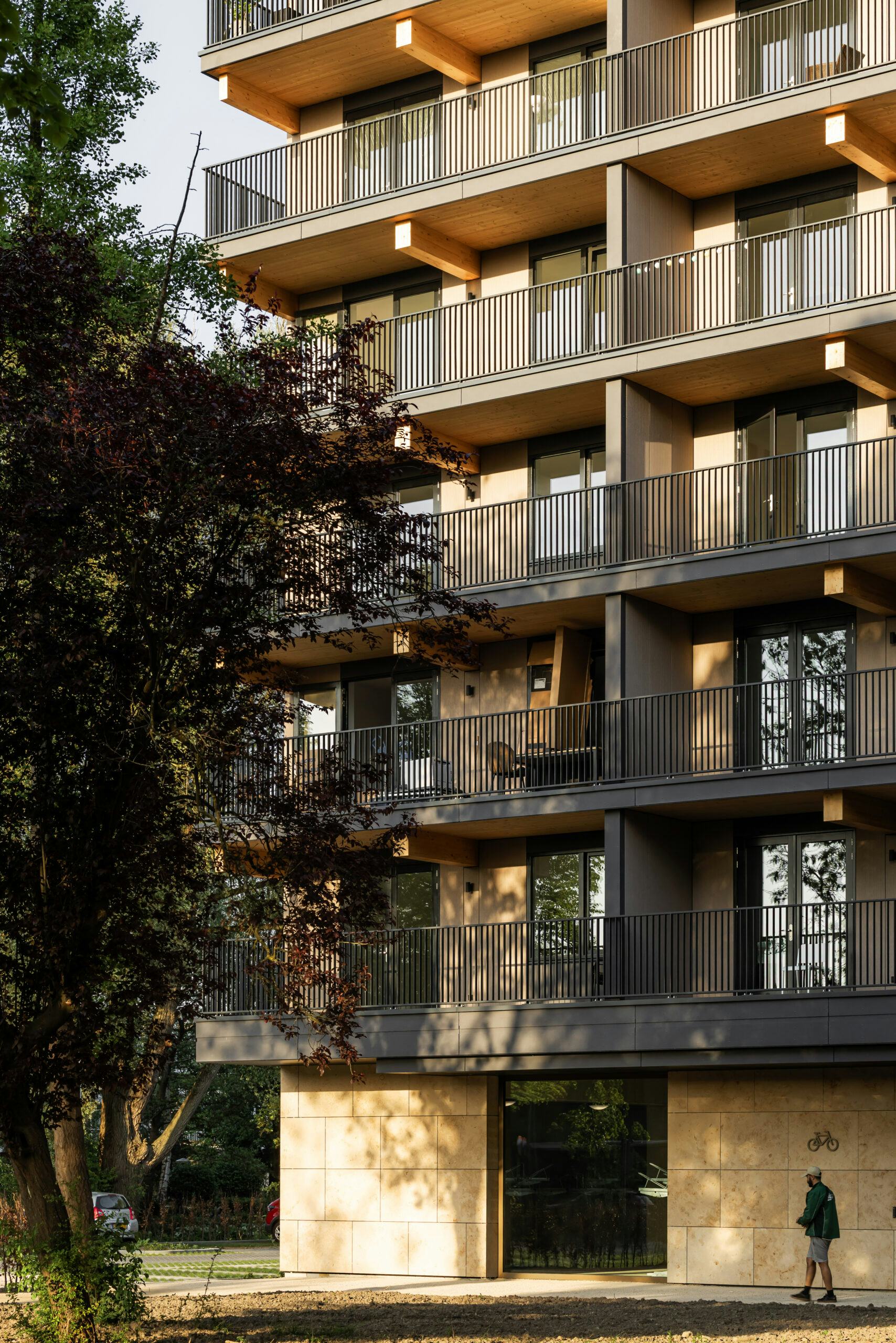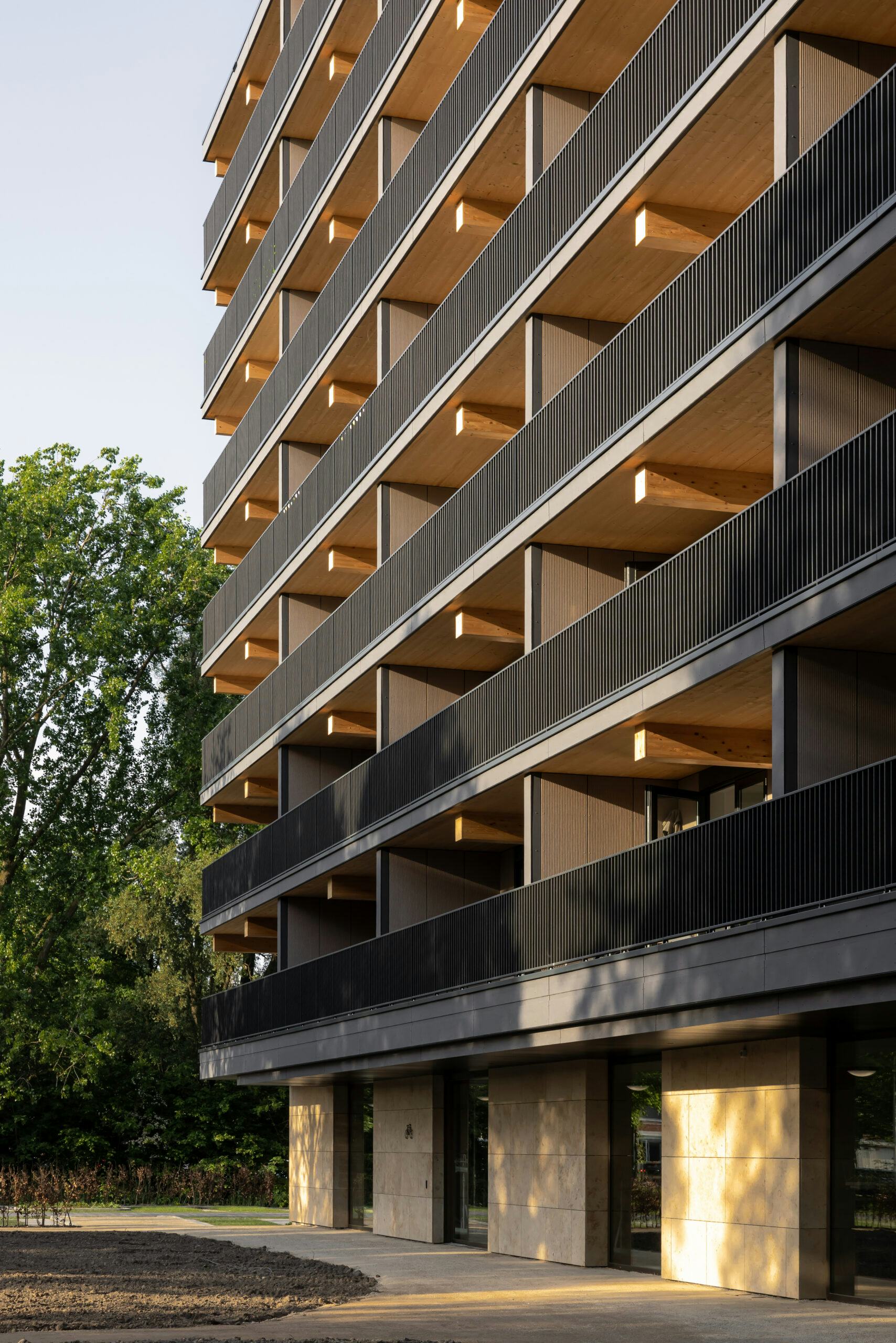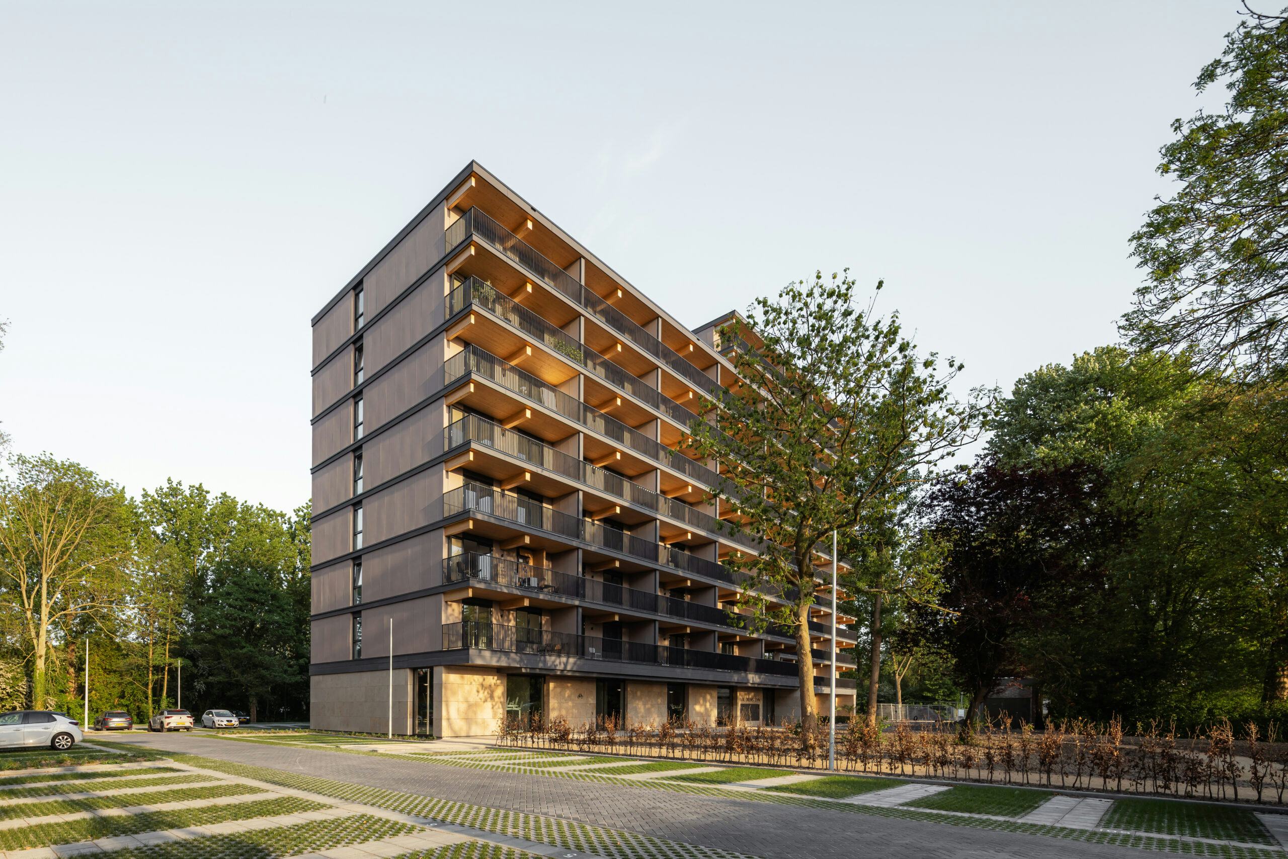De dragende constructie van het gebouw is grotendeels gemaakt van kruislaaghout (CLT). Alleen de begane grond en de kern van het gebouw zijn van beton. Door slim materiaalgebruik en geoptimaliseerde afmetingen is materiaalverspilling beperkt. Het project toont aan dat betaalbare woningbouw goed te combineren is met duurzame bouwmethoden, aldus architect Stefan Prins van Powerhouse Company.