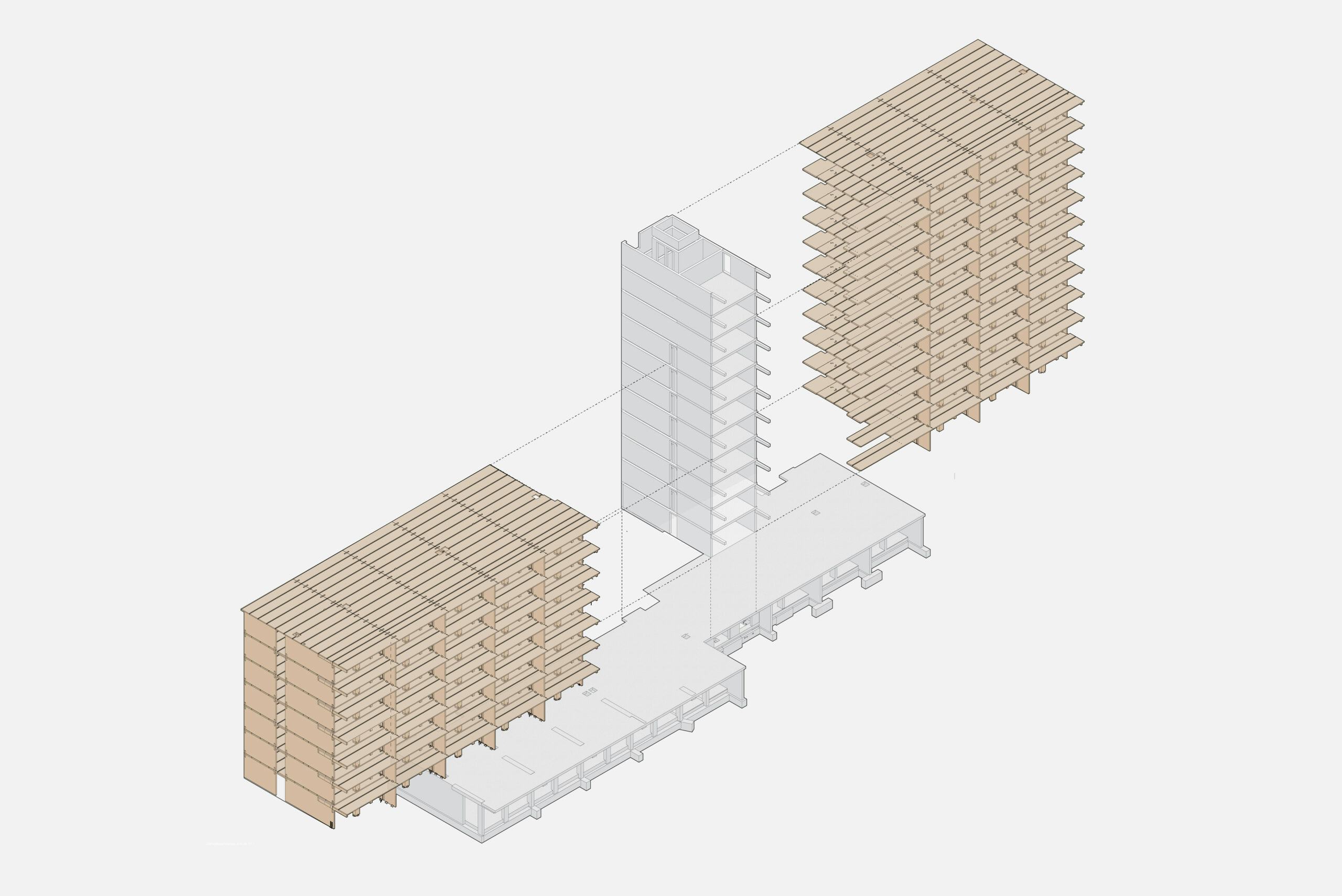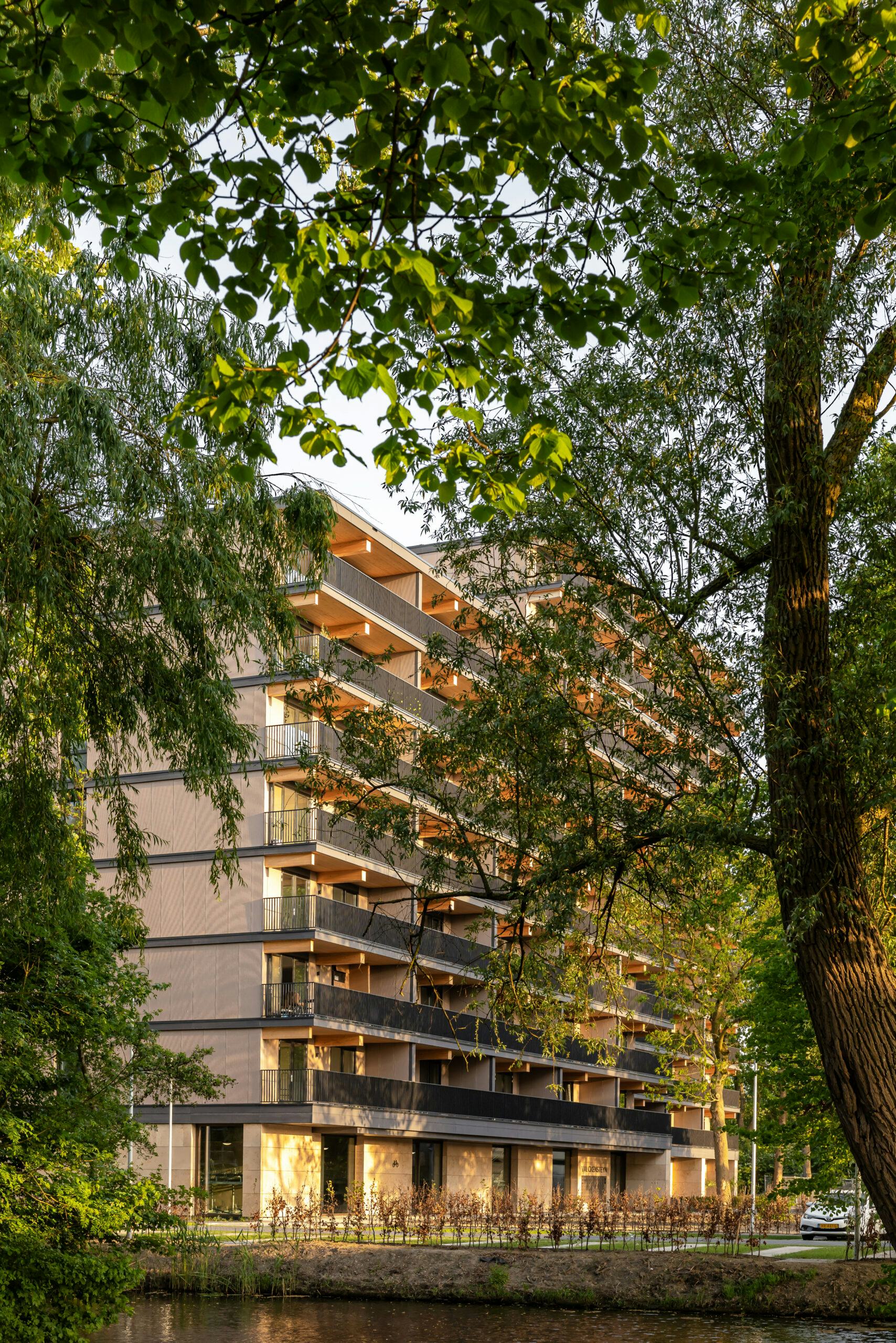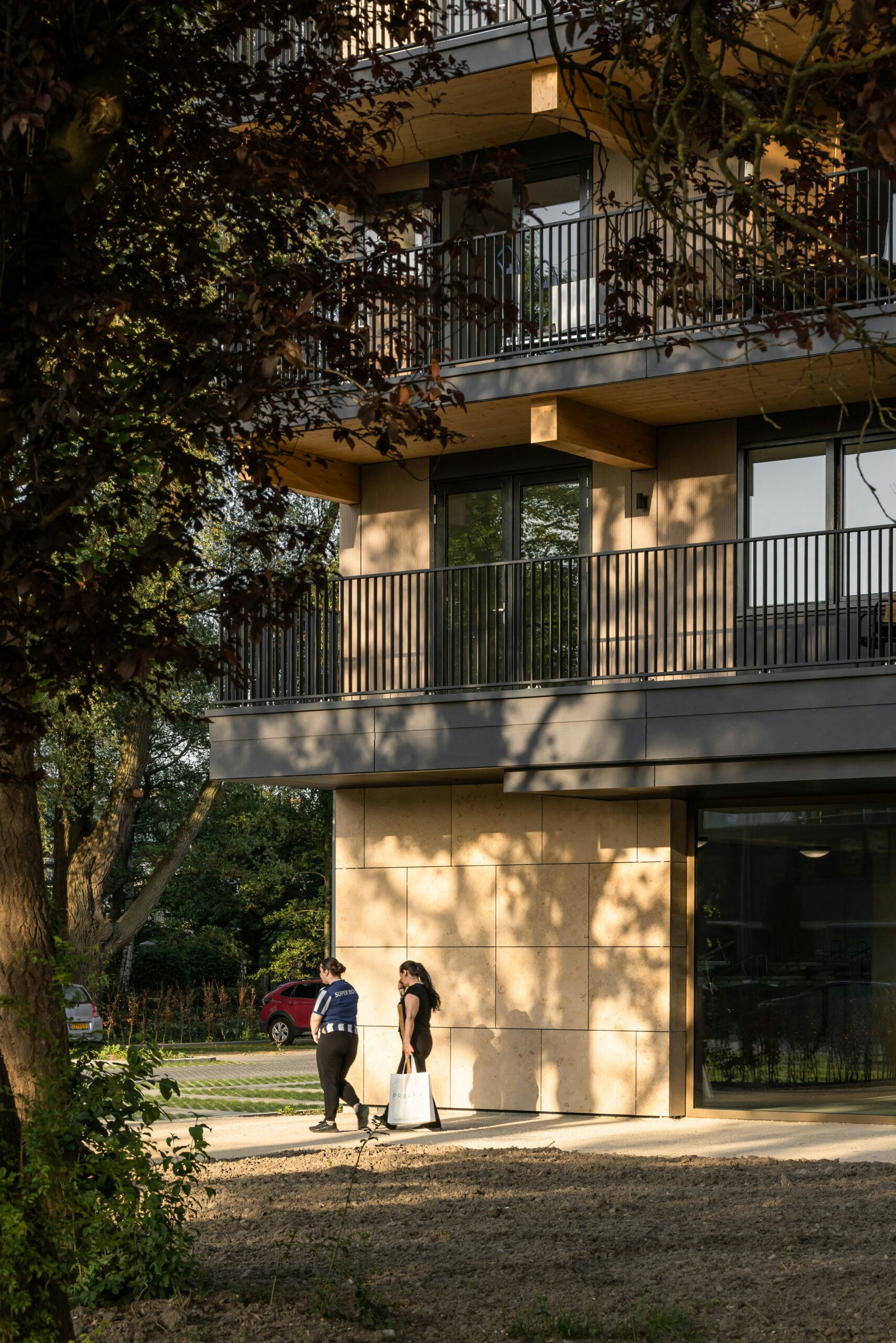 De dragende constructie van het gebouw is grotendeels gemaakt van kruislaaghout (CLT). Alleen de begane grond en de kern van het gebouw zijn van beton. Door slim materiaalgebruik en geoptimaliseerde afmetingen is materiaalverspilling beperkt. Het project toont aan dat betaalbare woningbouw goed te combineren is met duurzame bouwmethoden, aldus architect Stefan Prins van Powerhouse Company.