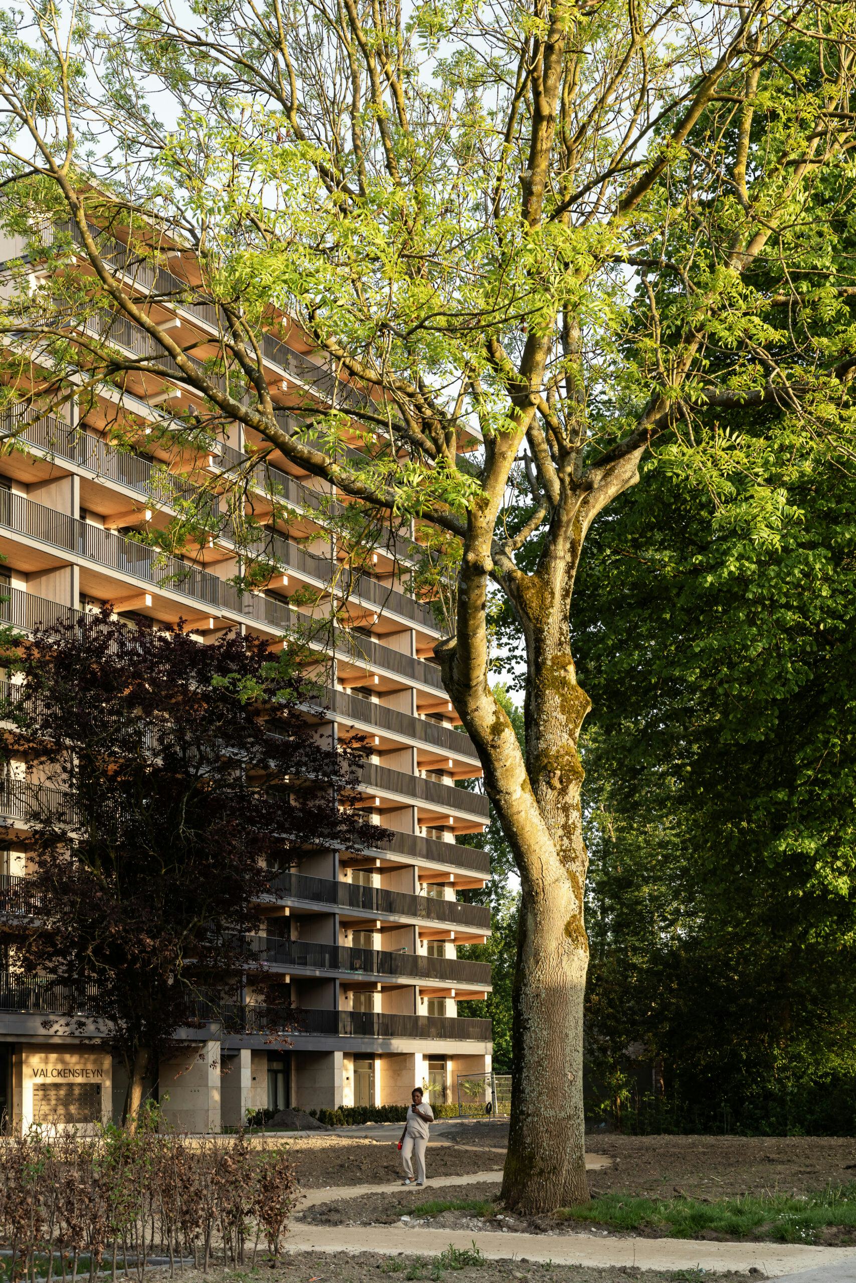 De woonomgeving is ontworpen met aandacht voor ecologie. Het gebouw ligt in een parkachtige tuin en heeft natuurinclusieve elementen zoals nestkasten voor vogels en vleermuizen. De gevel is deels bekleed met demontabele vezelcementplaten, en de plint is uitgevoerd in travertin – een verwijzing naar de oorspronkelijke architectuur van de wijk. Volgens Woonstad Rotterdam draagt Valckensteyn bij aan de leefkwaliteit en vernieuwing van Pendrecht.
