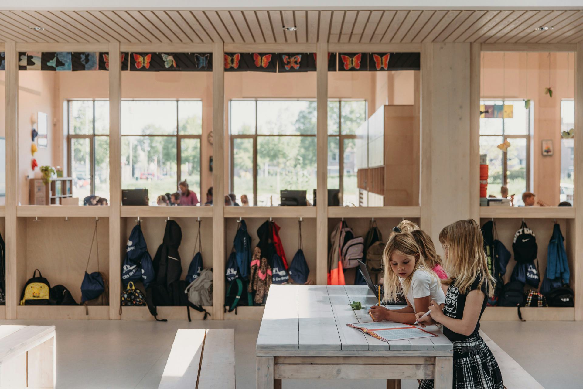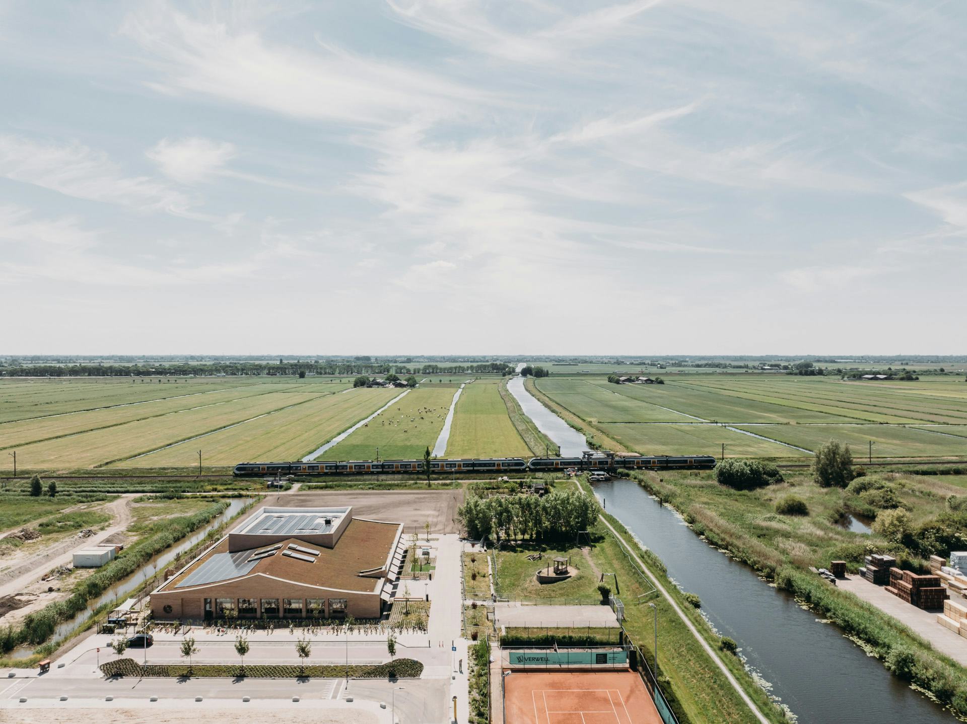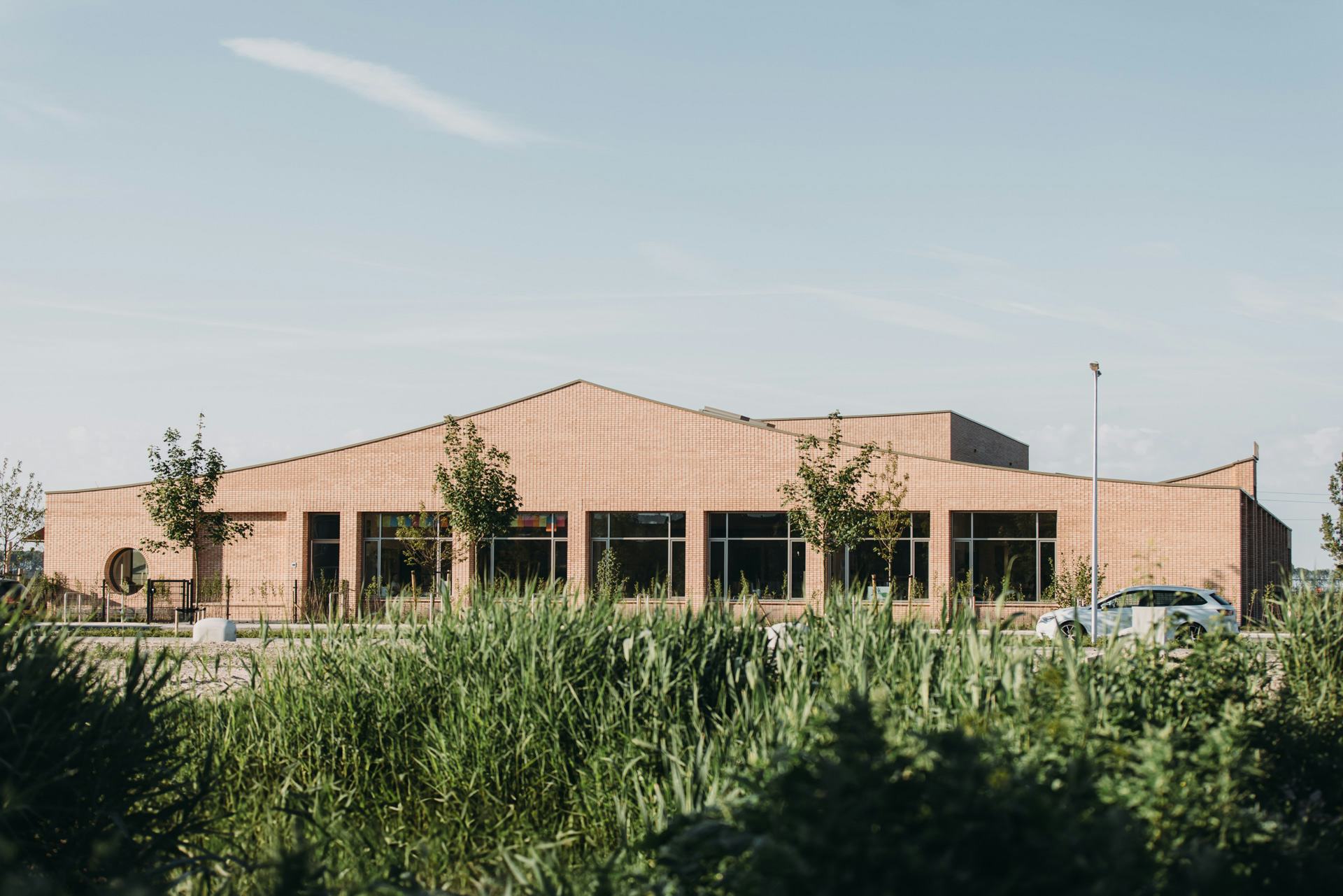 De nieuwe school is onderdeel van een dorpsuitbreiding en bedoeld voor alle kinderen in Nieuwerbrug. Door opvang, onderwijs en buitenschoolse activiteiten te combineren, sluit het centrum aan op de behoefte aan een doorgaande leer- en ontwikkellijn. Het gebouw ligt aan de rand van het dorp, midden in het groen, en weerspiegelt in zijn vorm en materialen het karakter van de omgeving.