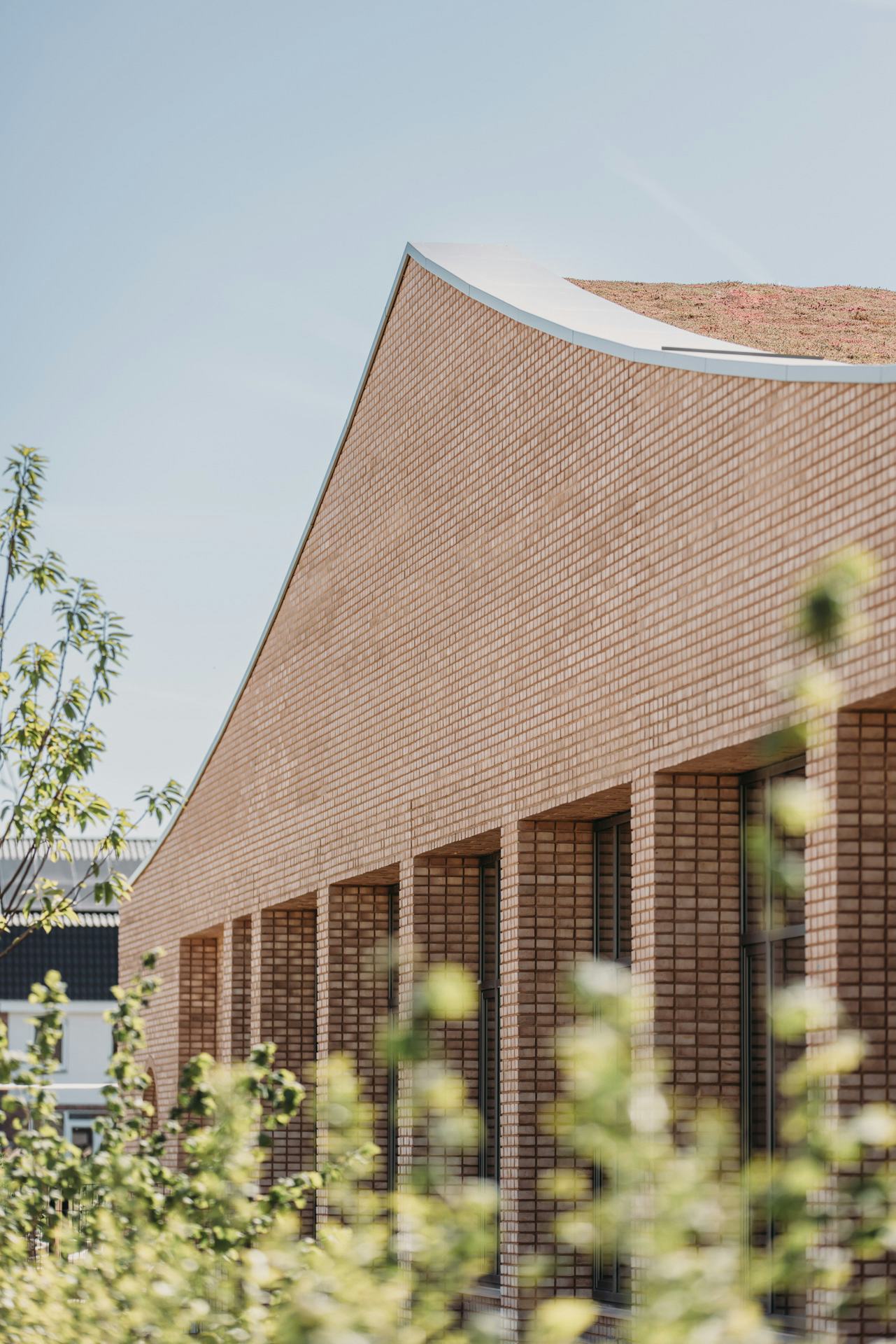 Het ontwerp draagt bij aan duurzaamheid en gezondheid. Het gebouw is energieneutraal, het dak is voorzien van zonnepanelen en volledig begroeid. De houten constructie zorgt voor een gezond binnenklimaat en maakt vloeiende vormen mogelijk. De gevel van zandkleurig metselwerk geeft het gebouw een herkenbaar uiterlijk. Rondom zijn natuurlijke speelplekken en een groen entreeplein aangelegd.